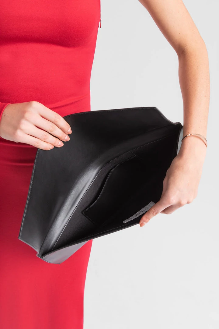 Minimal in detail yet maximum in impact, our Belle Clutch is made to hold and behold. It’s a structured fold-over clutch made from genuine Italian leather and finished with a button closure. The elongated design offers plenty of room for your phone and your other going-out essentials.[SPLIT]