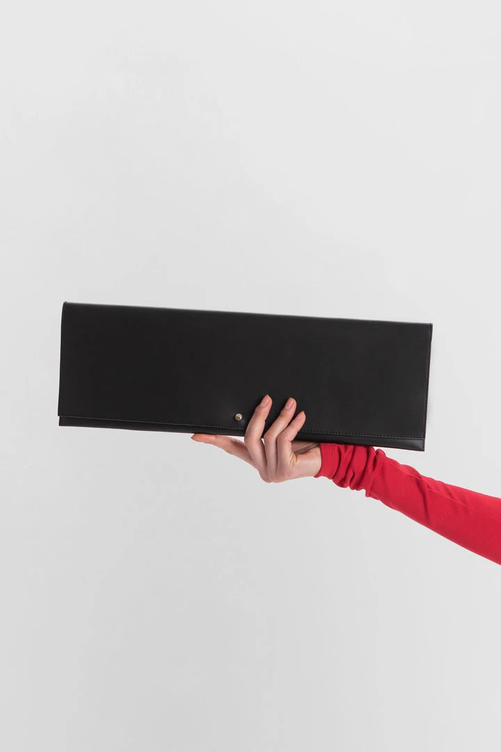 - Meant to be a conversation piece, the clutch is extra-long and extra stylish.