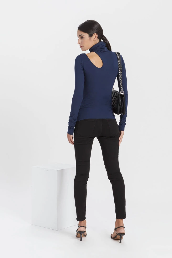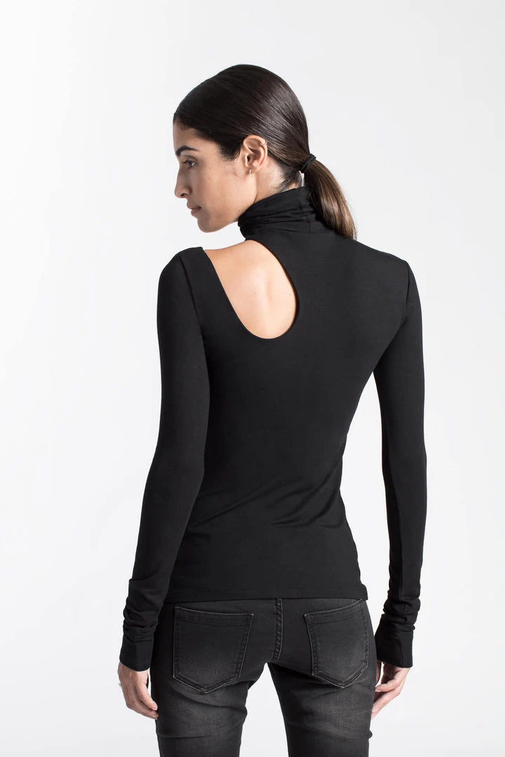 Take the plunge in our unique cut turtleneck, Allegra. The perfect top for a night out, she reveals the right amount of skin for an edgy look. Extra sleeves and a beautiful turtleneck balance out the stunning cut-out on your left shoulder. Fashioned from our beloved sustainable European jersey for stretch and softness. [SPLIT]