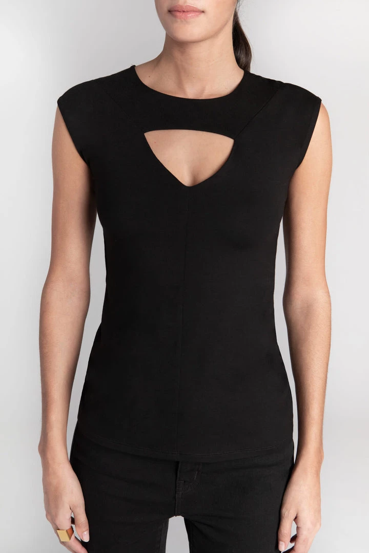 Alluring and bold, the Aloni Top is the perfect choice for a sultry look. The keyhole top and cap sleeves give this tee a modern feel. [SPLIT]