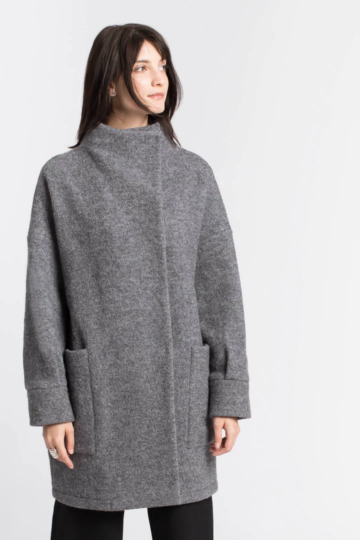 Our Emerson Coat is the cold weather staple that strikes the harmonious balance between classic and modern. An off-center closure couples with an oversized, boxy silhouette to keep you stylish, while breathable 100% Italian virgin wool and a high collar keep you warm and cozy. Emerson’s best suited for cooler temps but generously cut for layering to extend wear through cold weather.