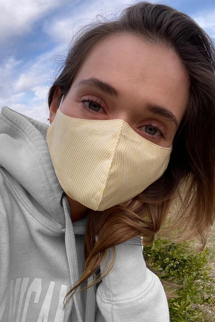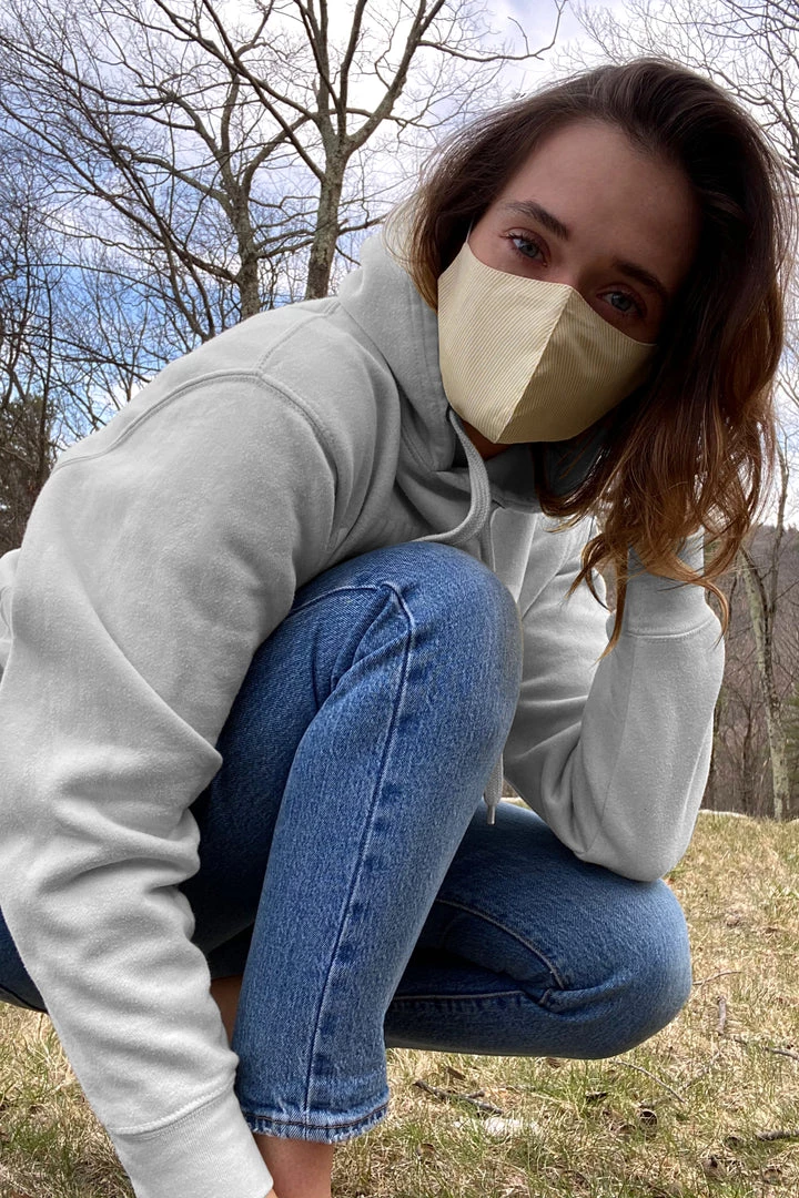 Our standard size mask fits women and men with small to average head sizes and comes with adjustable ear loops, plus a built-in metal nose wire to improve the fit and help prevent glasses from fogging. It’s made with two layers of tightly-woven 100% cotton and includes a filter pocket with a washable filter, made of German recycled polyester (OEKO-TEX® Certified).