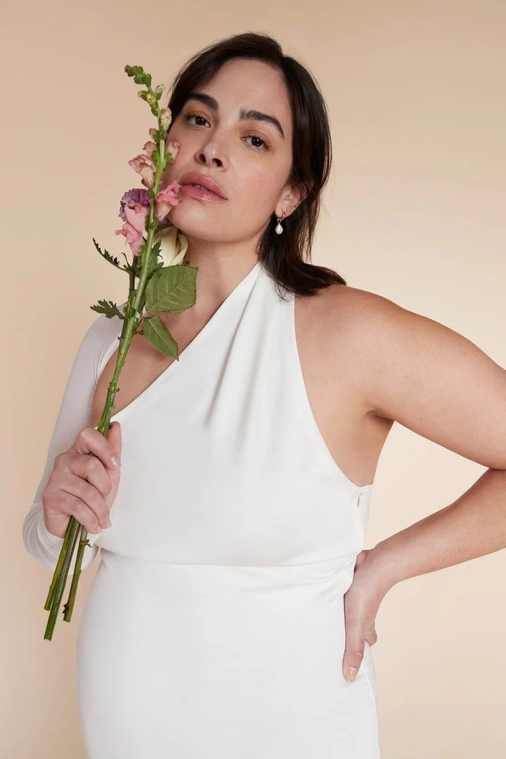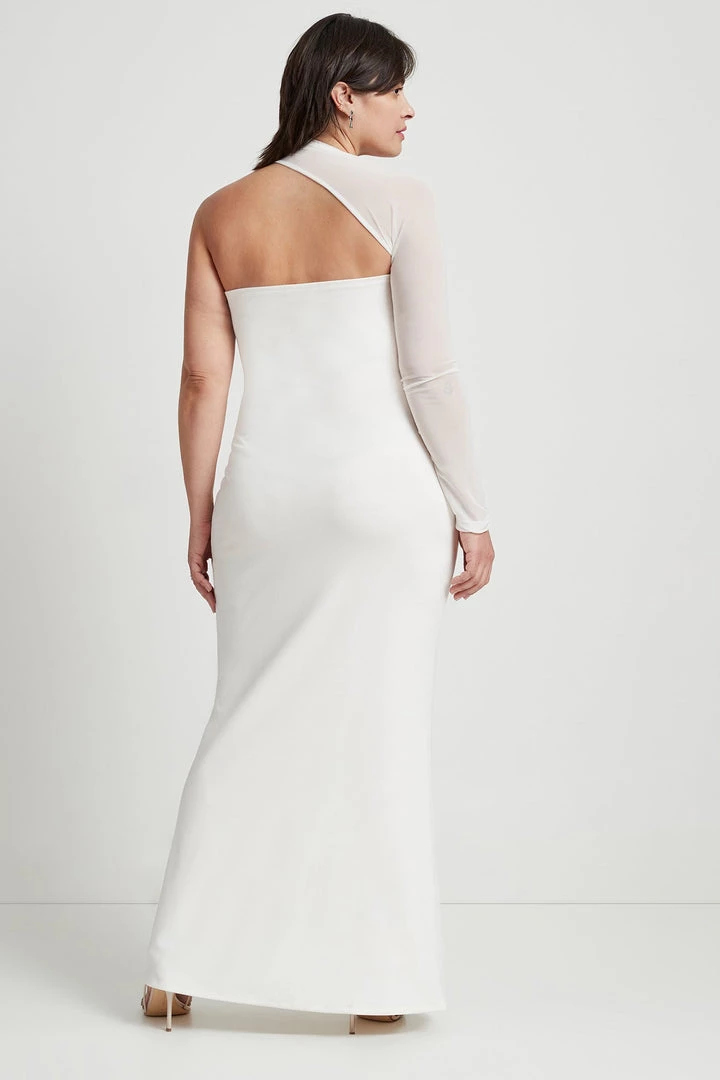 Our Manhattan Mesh Sleeve Gown is the hero dress for the brightest events on your calendar. She features an eye-catching wrap-around halter neckline that turns to reveal an open back. The lone European mesh sleeve brings an edgy yet delicate detail to an already dramatic silhouette. Crafted from our beloved soft, mid-stretch European ponte fabric, she offers a smoothing stretch that effortlessly hugs the body.