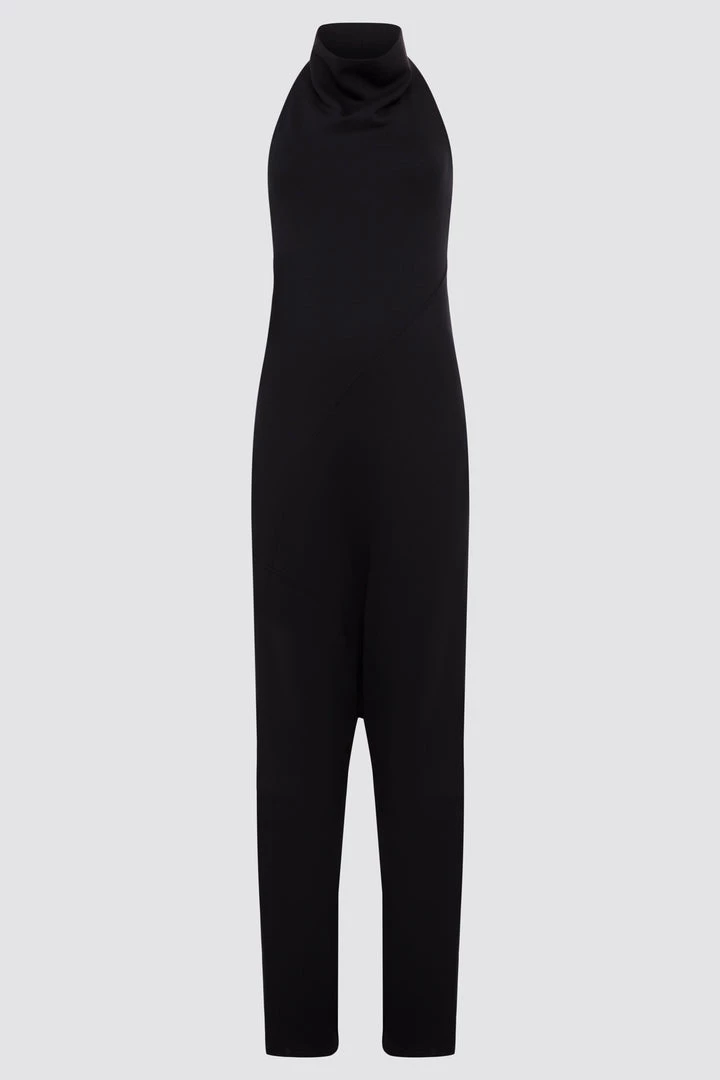 Channeling timeless cool, we created the Cynara Jumpsuit. Fashioned from our soft, mid-stretch European ponte fabric, she’s a full-length one-piece with a cowl neck halter and drop-crotch legs. Both edgy and elegant at once, Cynara makes a statement and is perfect for day-to-night wear. [SPLIT]