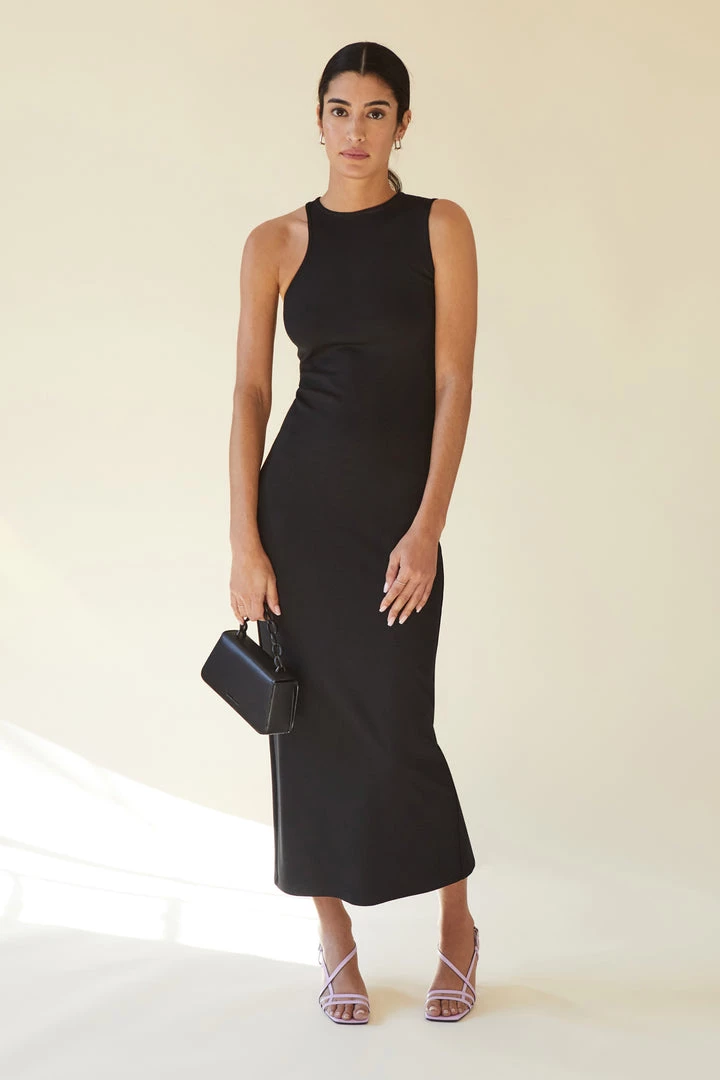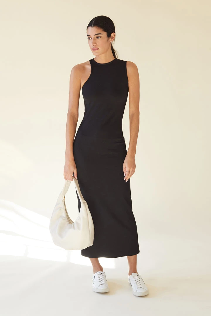 Meet the minimalist must-have LBD: our Daya Dress. Inspired by our fan-favorite Daya Sleeveless Top, we designed her as a truly original, asymmetrical design by introducing a curved halter design on one side. Handcrafted from our structured, mid-stretch European ponte fabric, Daya is perfect for dressing up or down as you desire – either way, you’ll cut a unique figure and experience all-day/all-night comfort/support.  [SPLIT]