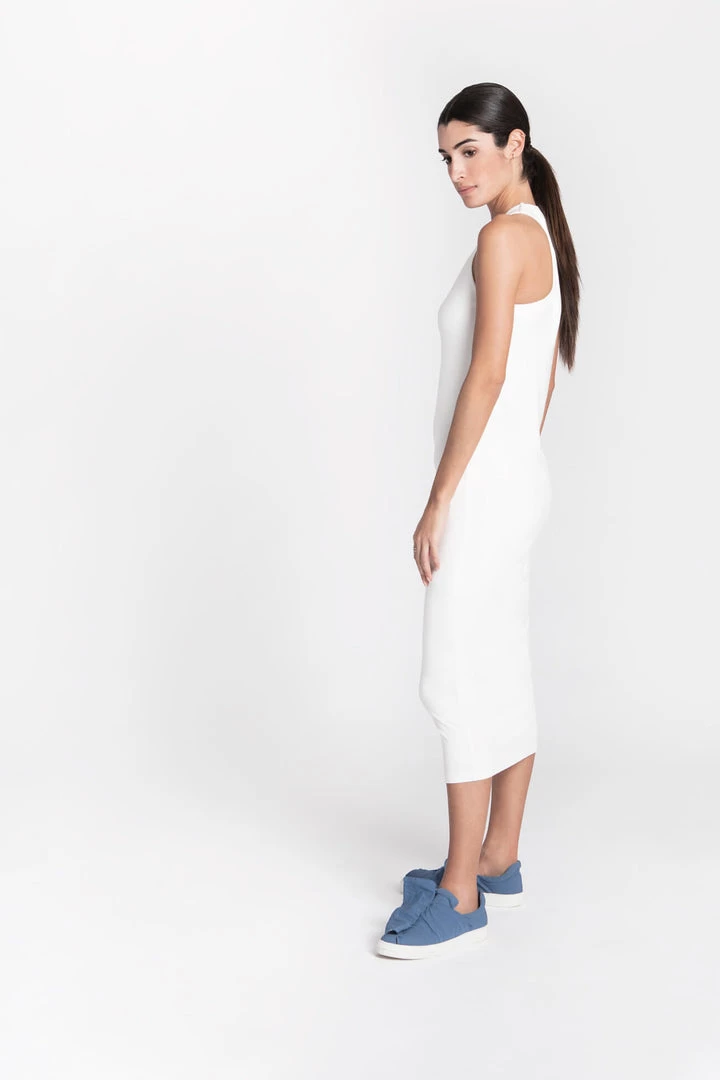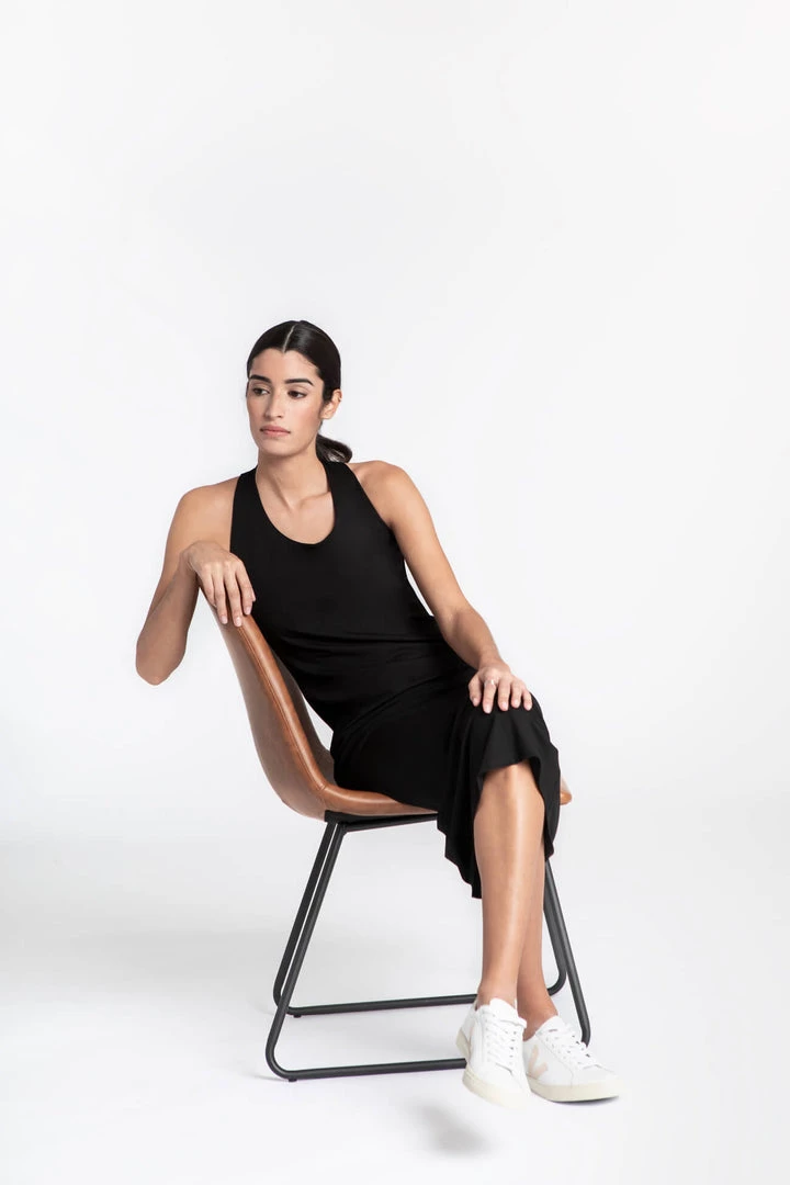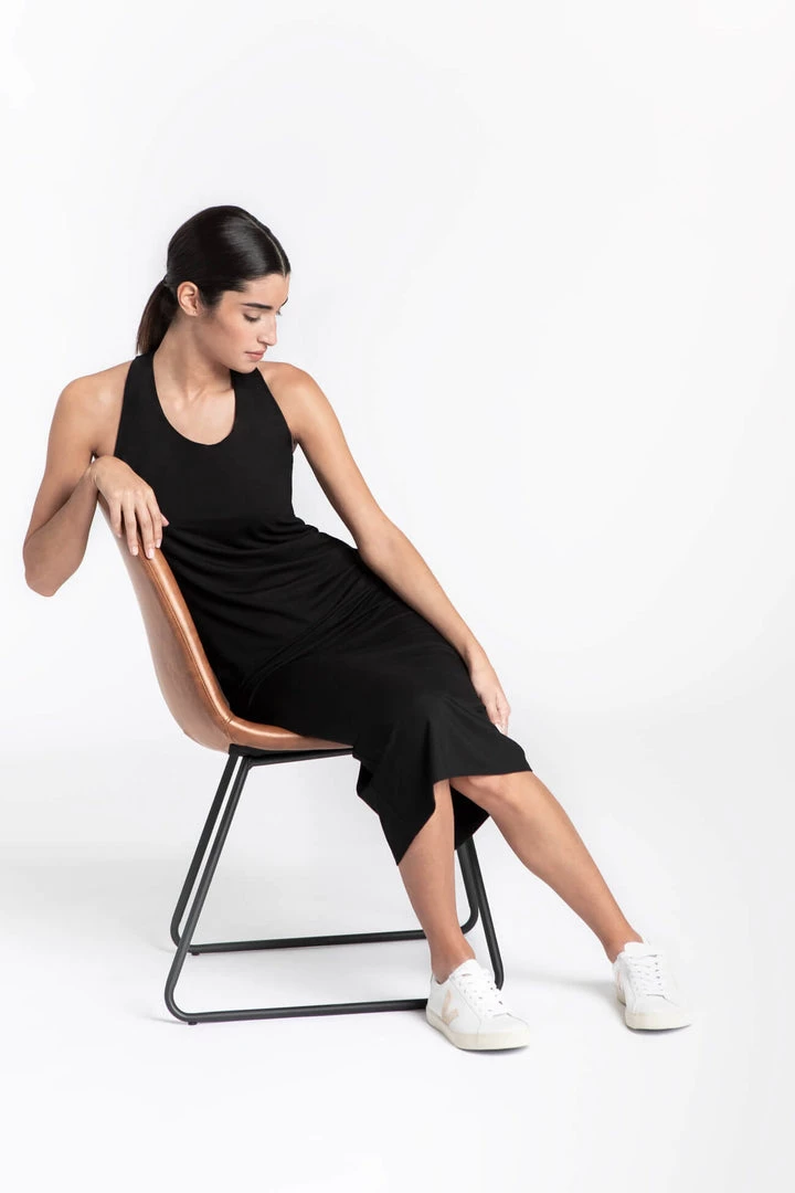 A simple dress with an unexpected twist (literally!) in the back. The Callan Dress is the ultimate knit midi that you can dress up or down for instant style. [SPLIT]