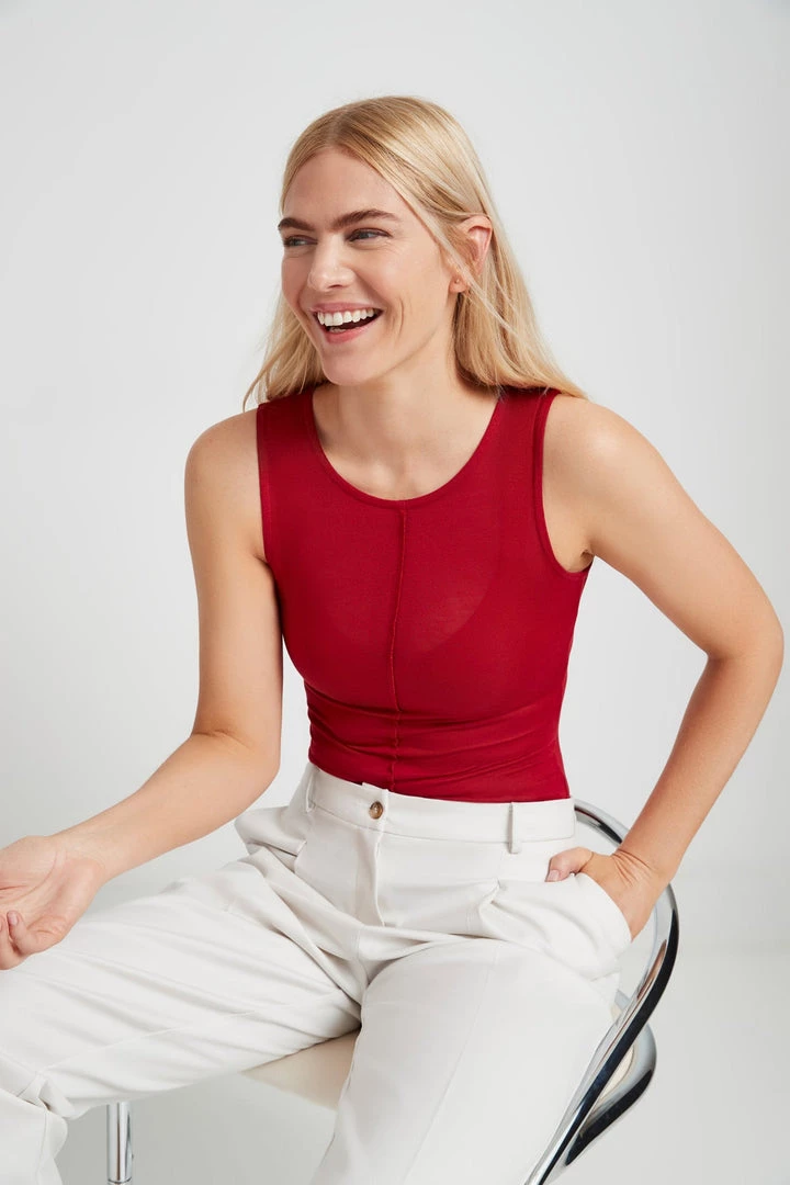 Our Eva is not your ordinary sleeveless top. She elevates your go-to minimalist basic with a vertical, raw seam at center to create a sophisticated silhouette. Eva’s handcrafted from our beloved sheer European jersey — offering the softest, most flexible stretch while feeling light as air.