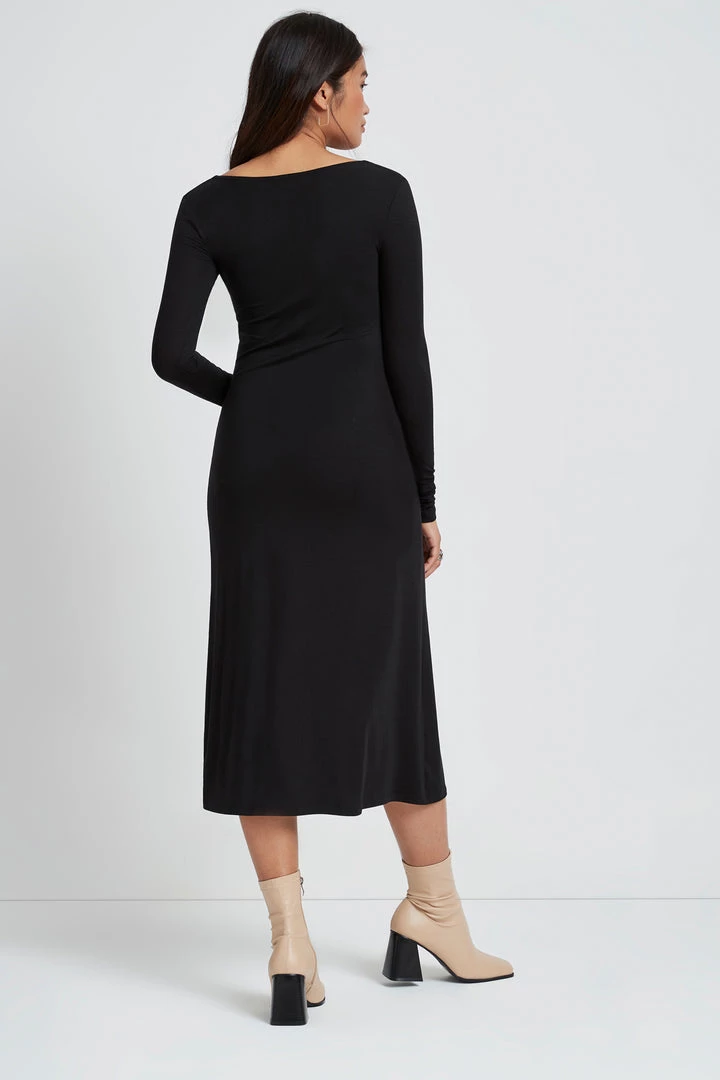 Introducing your new do-it-all LBD. We designed our Hamptons Dress with a wide, sculpted neckline that frames your collarbones and with a relaxed, flowy fit that falls below the knee. She’s crafted from our soft and sustainable European jersey (that’s high-stretch), giving this long sleeve midi an elegant feel. The Hamptons Dress is what you can look good in anywhere, anytime – day, cocktail or in between.[SPLIT]