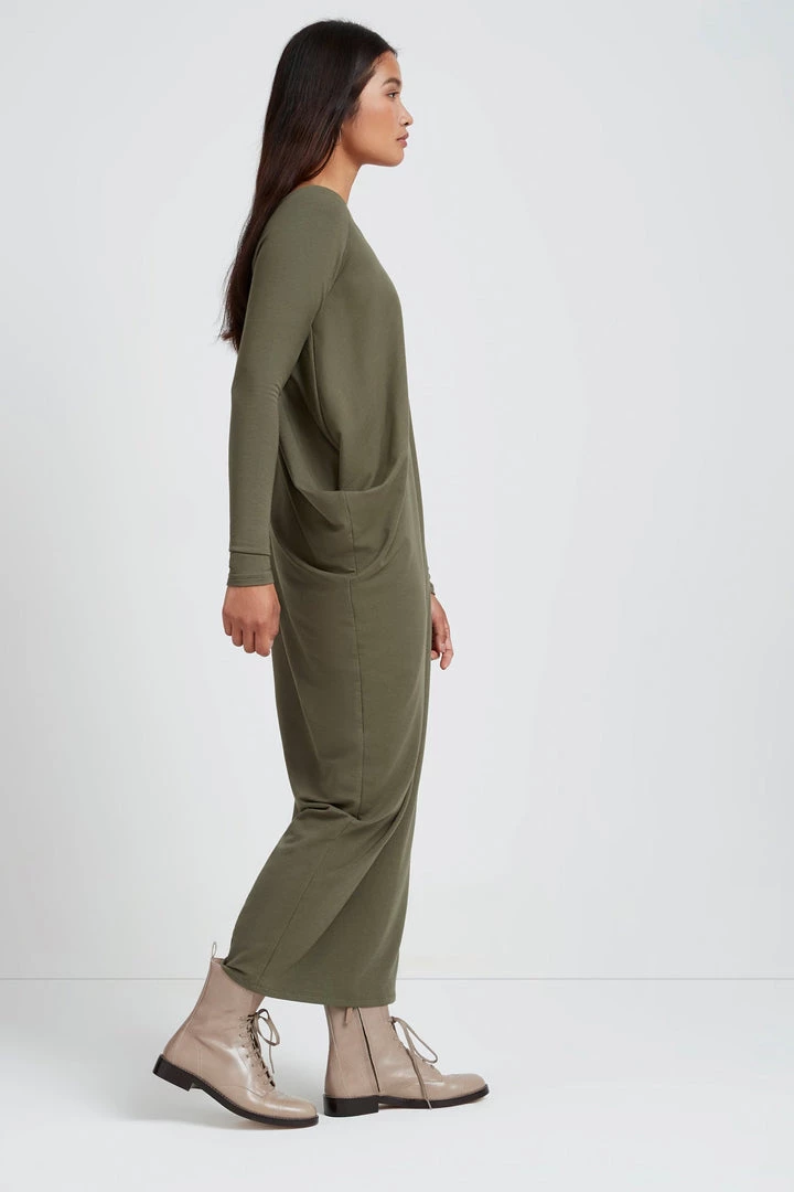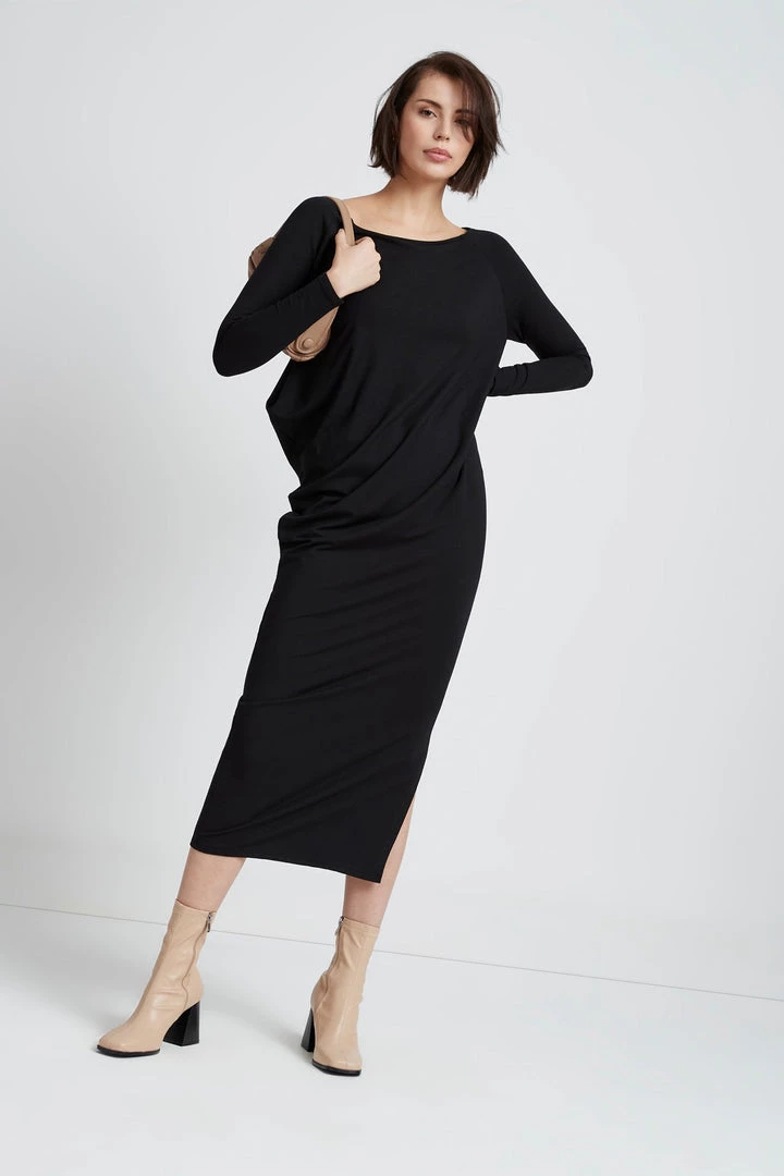 Easy elegance in a cozy dress: our Kensington Dress. Fashioned from lightweight, breathable and soft European cotton mix, she features a roomy fit and a wide, round neckline, allowing you to style her off the shoulder if you choose. Tailored at one side to add asymmetry to your everyday look, Kenzington’s hem hits above the ankles with a short slit at one side, so you can show off a pair of boots, or sneakers for a full athleisure effect. Kensington’s perfect for day, dinner, and dates.[SPLIT]