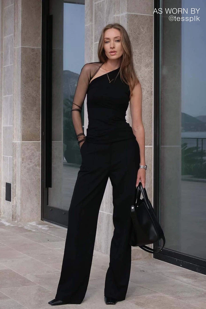Elegant, edgy and easy to wear, our Manhattan Mesh Sleeve Top checks all the boxes of a hero piece. She reimagines our signature one-shoulder silhouette with a delicate, extended European mesh sleeve. Made from European ponte, she sits close to the skin to flatter your figure.[SPLIT]