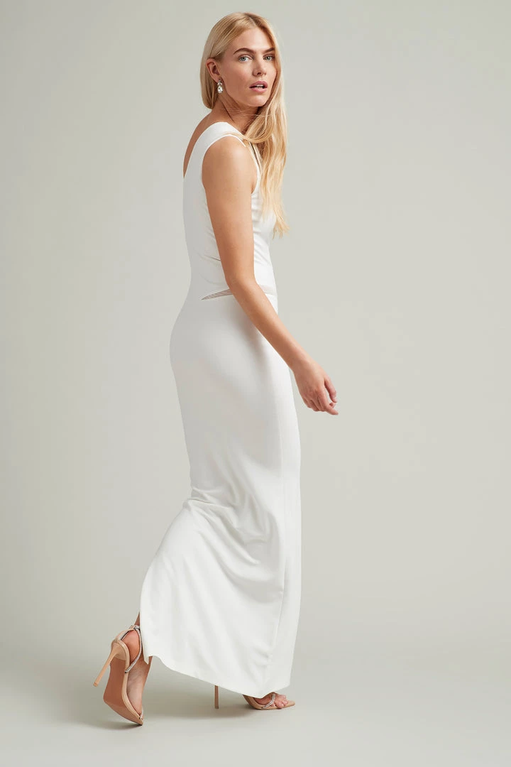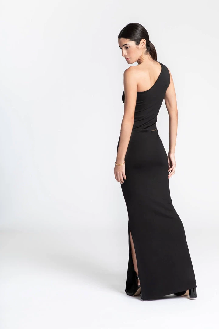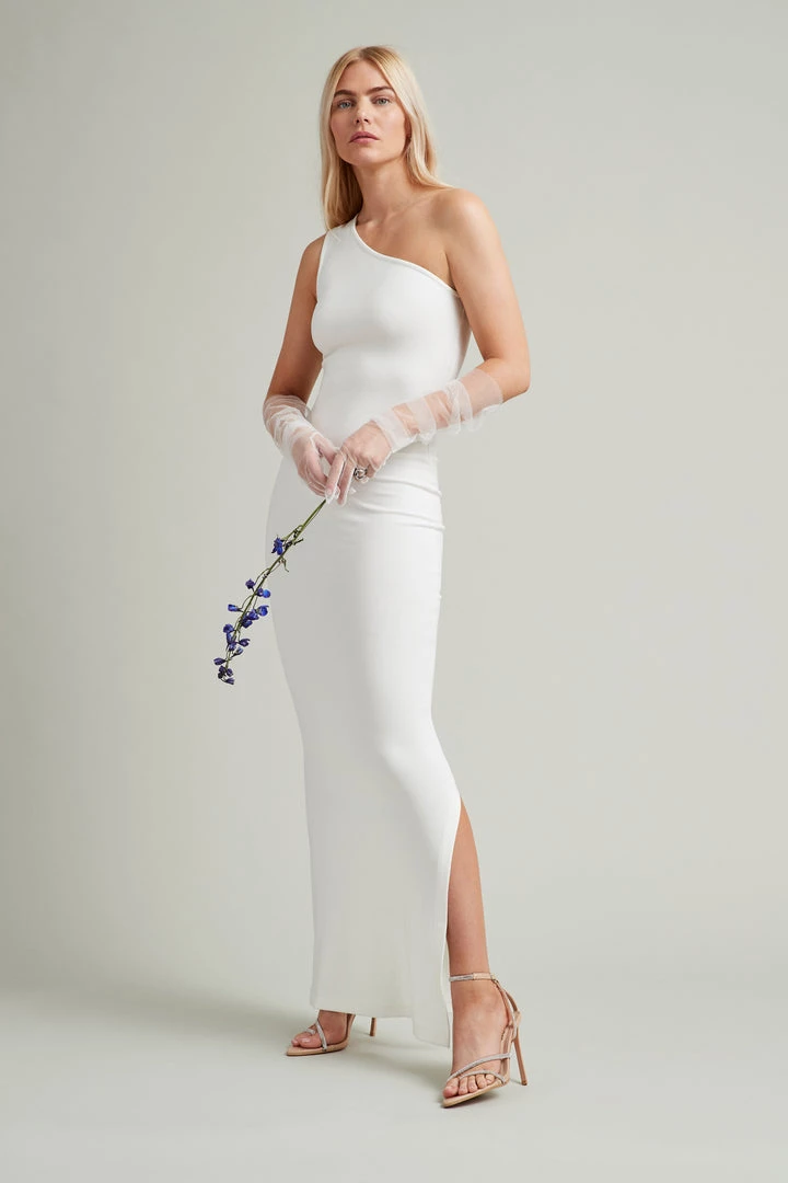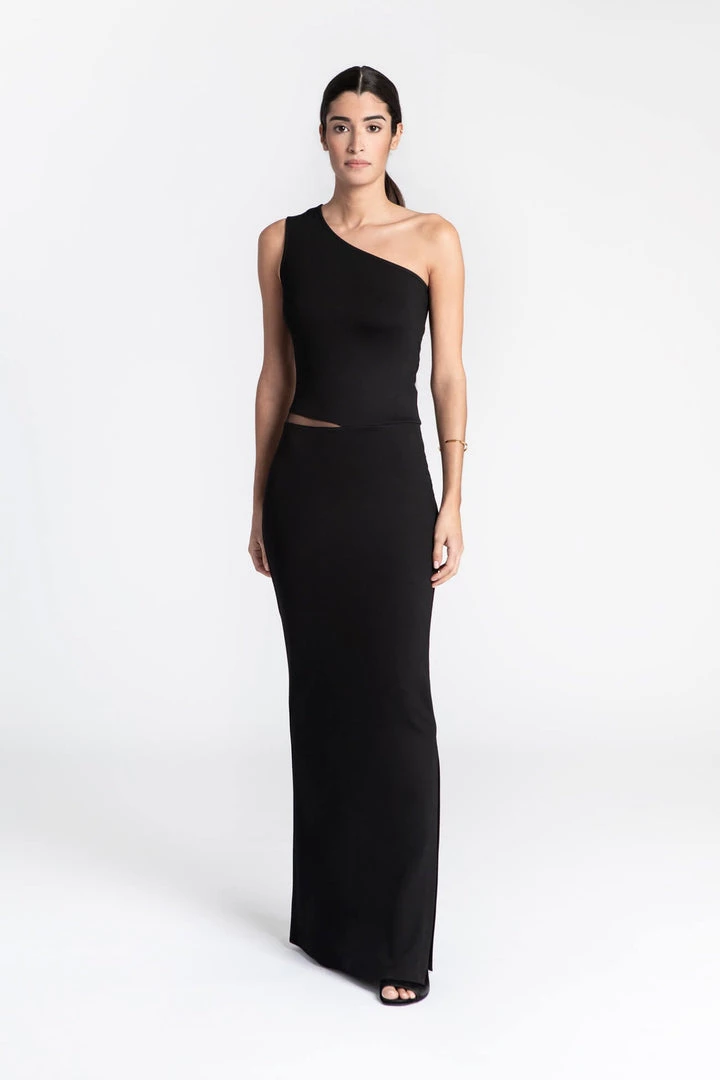 Introducing the Martina Dress, our minimalist evening wear piece laced with edge (Black Tie, anyone?). A towering column gown, she features a classic one-shoulder silhouette and a sliver of mesh insert on the waist—elevated details that will keep all eyes on you. Martina’s crafted from our soft, mid-stretch European ponte for a smooth, crease-free finish and glove-like fit.[SPLIT]