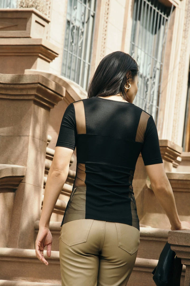 Introducing Evie, our sleek, perfectly hugging top with a stunning back for life about town. A classic minimalist silhouette in the front gives way to criss-cross, peekaboo cut outs in the back. The warm-weather take on our bestselling Edie Top, Evie’s fashioned from a combination of sustainable European jersey and European mesh – both silky soft and high-stretch, ideal for all-day/all-night wear. Â