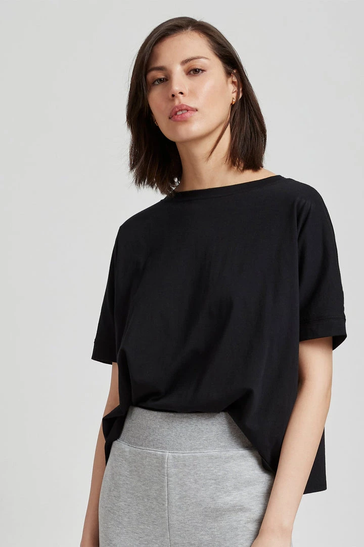 Oversized without overwhelming your frame, the Soleil Tee features a perfectly boxy cut. Her sleeves hit just above the elbows, while her back is framed by a decorative seam along the shoulder line. Soleil is handcrafted from soft, 100% organic European cotton for a light, all-day feel with a timeless look. [SPLIT]