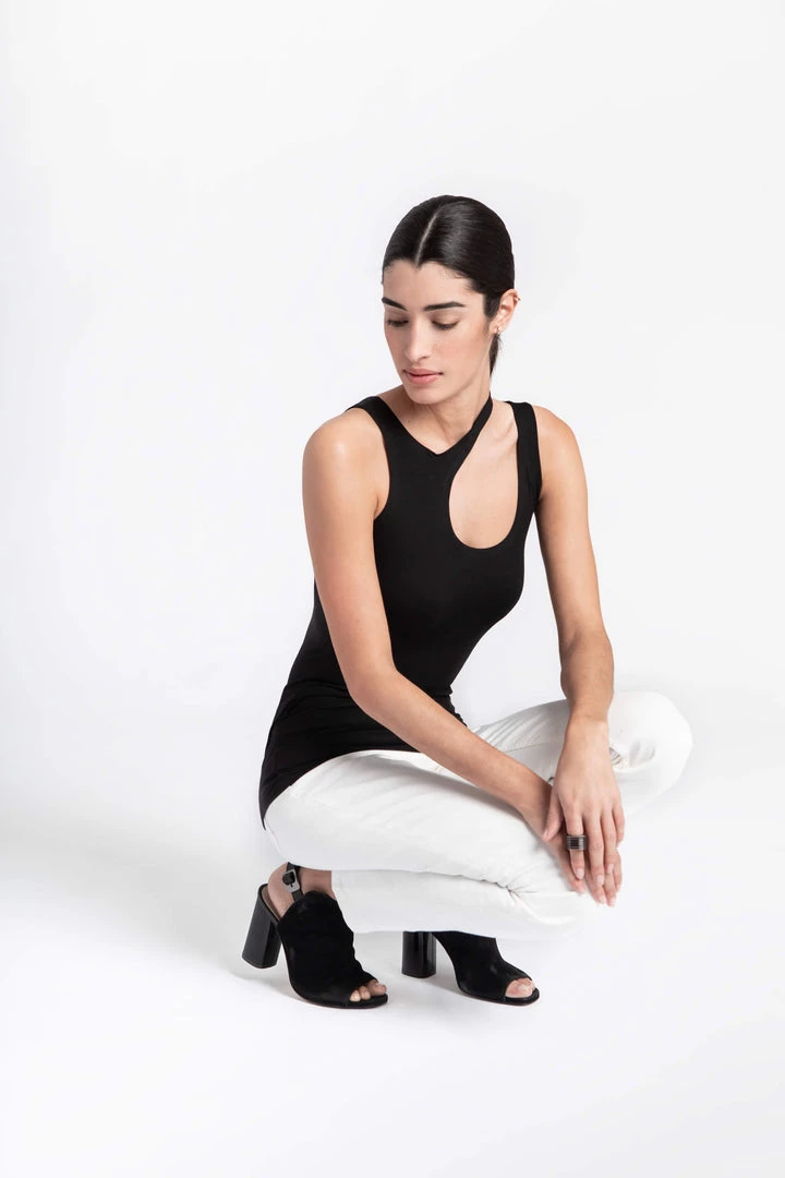 Incorporating geometry into an outfit is a favorite Marcella design approach. Our Alessia Top is so simple yet so unique in this way with its play on circularity. We recommend wearing her with a strapless bra (and know the white version comes in two layers to also make it bra-friendly). [SPLIT]