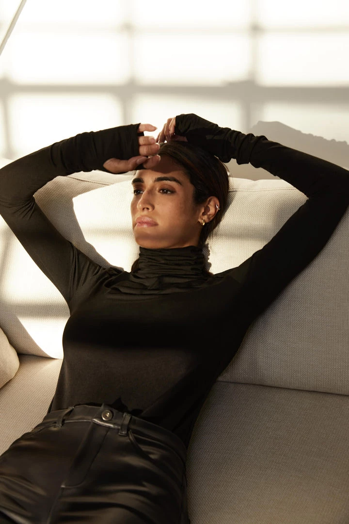 Meet Eloise, our turtleneck providing dream tailoring with lasting comfort. Casual yet easy to dress up, she’s a true staple. Fashioned from our soft, high-stretch and sustainable European jersey, she features thumbhole sleeves and our standard extra length around the torso. Eloise’s available in our favorite neutrals, plus a splash of Lime—a limited-edition hue.