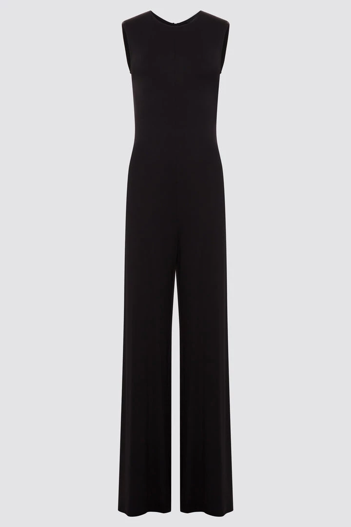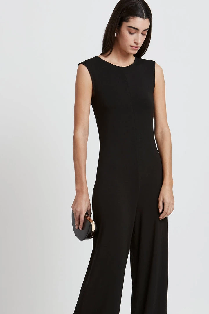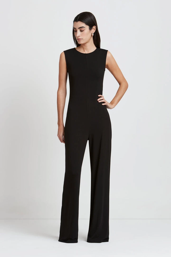Say hello to our Whitney Jumpsuit. Low maintenance and perfect for doing anything, she features a sleek round neckline and straight, flowy pants. Fashioned from our beloved soft, sustainable European jersey, Whitney cuts a figure-skimming fit with a wrinkle-resistant finish. Just add a bright clutch for a pop of color and go…[SPLIT]