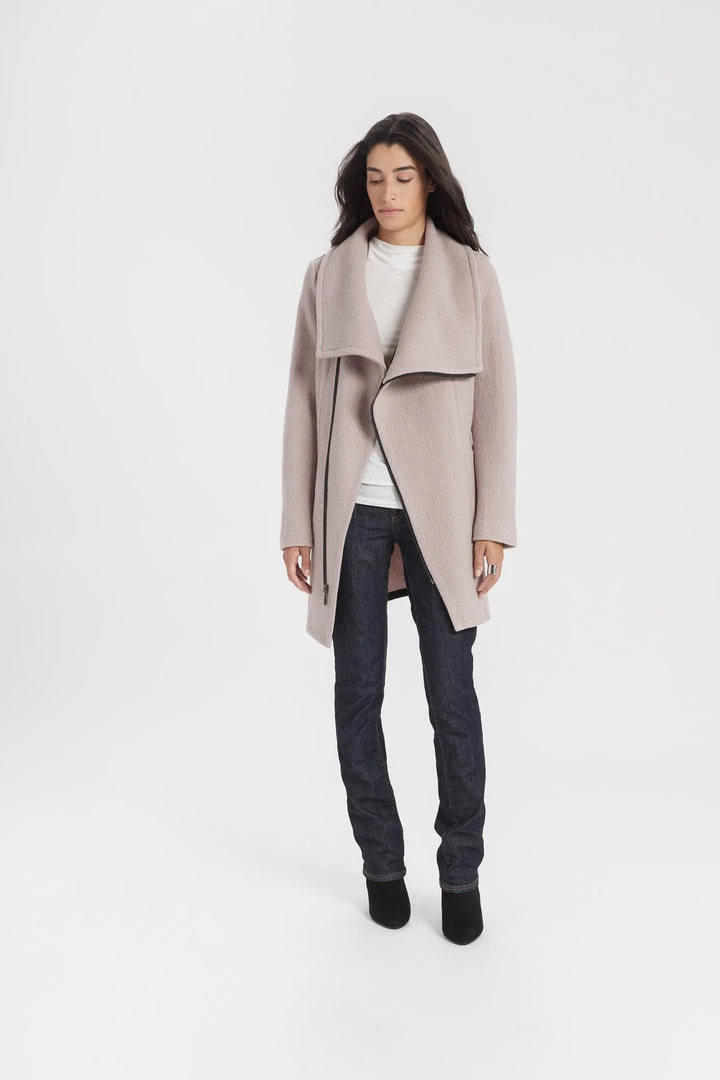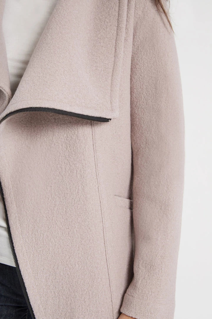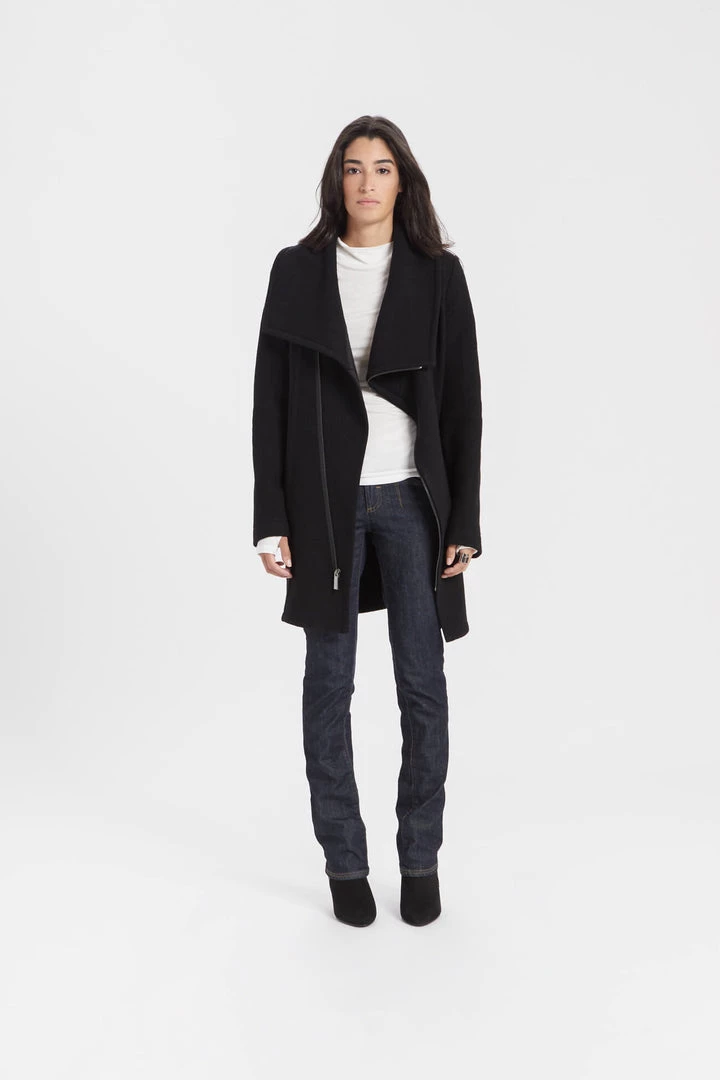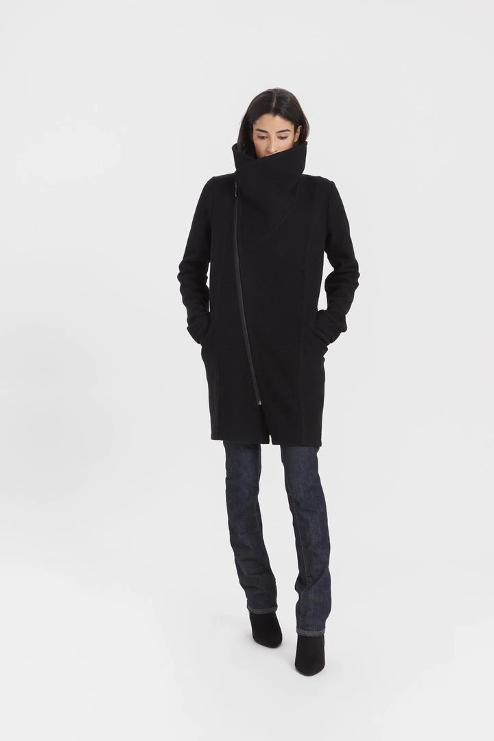A high collar light jacket with an asymmetric zipper. The ultimate statement piece, handcrafted from premium materials. Best suited for fall and spring temps. Cut for layering to extend wear through colder weather. [SPLIT]