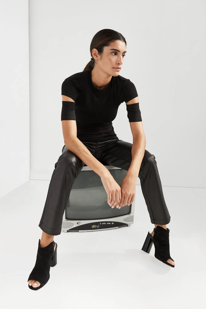 Meet Esme, our essential, oh-so-versatile top with a twist. She features a round neck and dual cutouts at the sleeves that give her the edge you crave. Fashioned from our silky soft, high-stretch and sustainable European Jersey, she’s perfect for dressing up or down for that uncomplicated yet hypnotic look.[SPLIT]