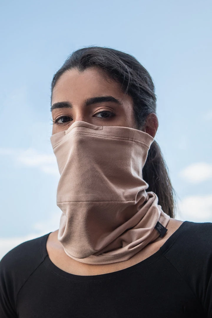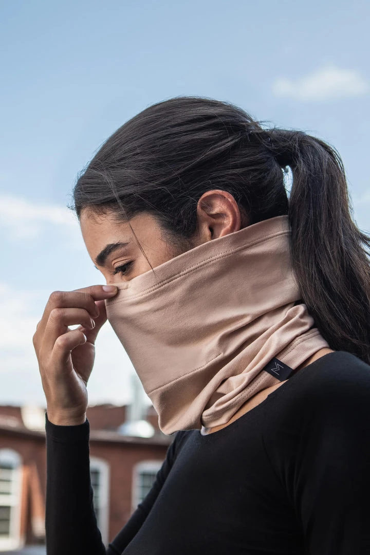 Reusable, machine-washable tube scarf made with soft and stretchy European Tencel and Lycra mix (a sustainable and breathable fabric). Double layered around the nose and mouth as it features a filter pocket to provide a level of protection similar to a face mask. More than just a face covering, our neck gaiter can be worn on its own, with a filter, over your mask for extra coverage, as a headband, scarf, balaclava, and more. A moldable, embedded nose wire keeps the gaiter from slipping, ensuring a secure fit.[SPLIT]