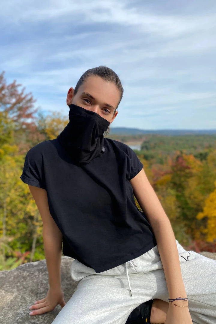 Reusable, machine-washable tube scarf made with soft and stretchy European Tencel and Lycra mix (a sustainable and breathable fabric). Double layered around the nose and mouth as it features a filter pocket to provide a level of protection similar to a face mask. More than just a face covering, our neck gaiter can be worn on its own, with a filter, over your mask for extra coverage, as a headband, scarf, balaclava, and more. A moldable, embedded nose wire keeps the gaiter from slipping, ensuring a secure fit.[SPLIT]