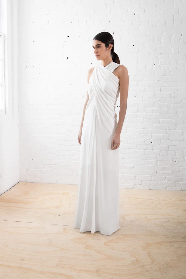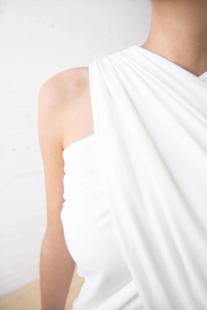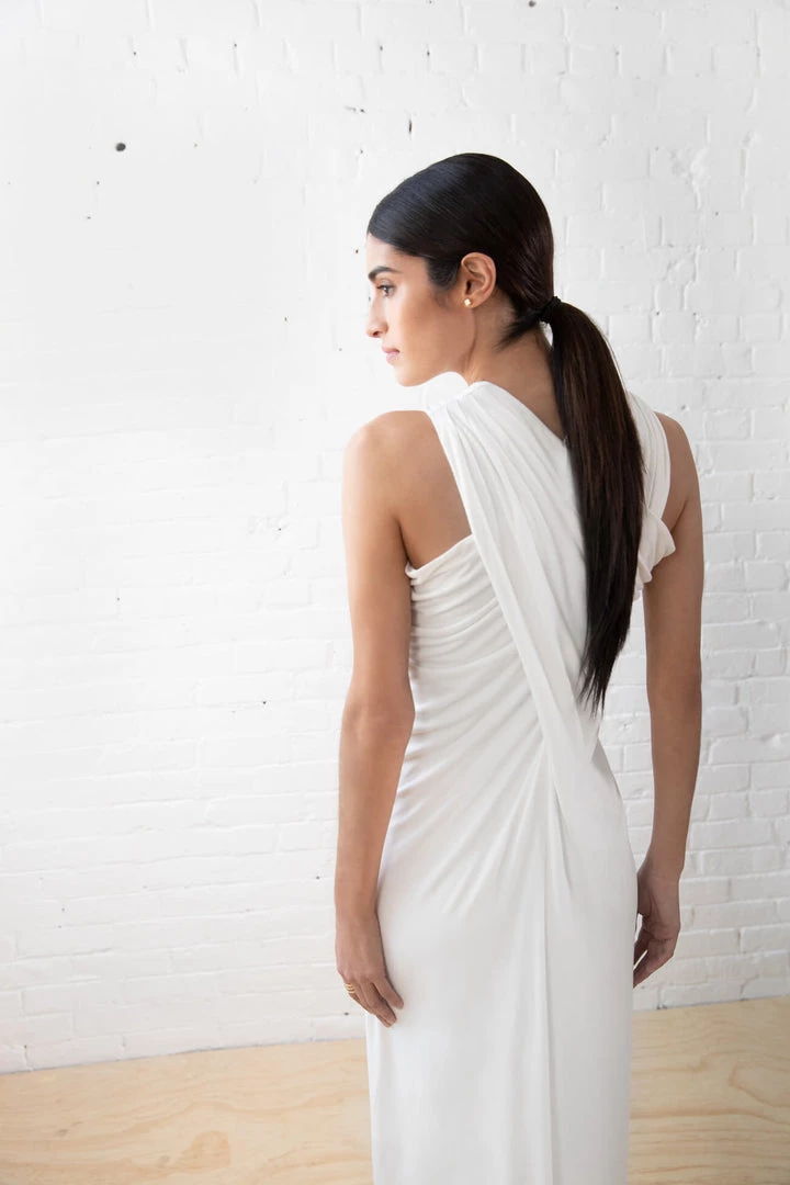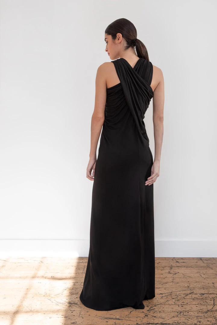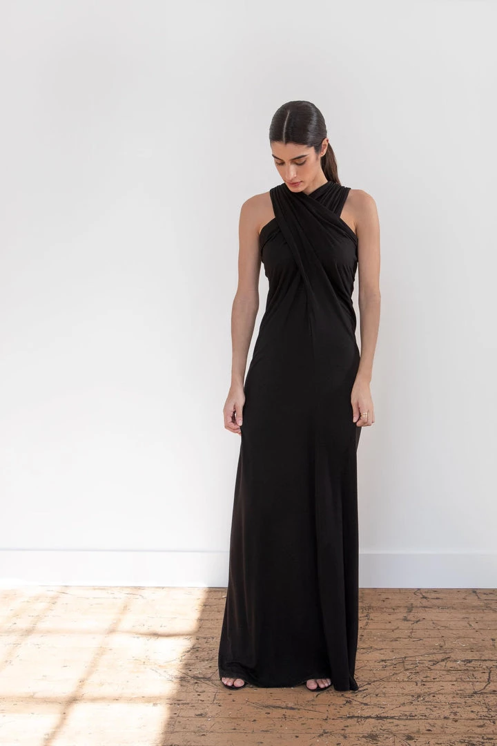 At the heart of Marcella is a love for surprising details—and this long, layered maxi gown delivers. Made with our exceptional jersey fabric, Florentina creates soft drapes that exude an ethereal feeling. Wear her to a wedding, a party—this design is as versatile as it is beautiful. Featuring a cropped inner lining, for added coverage with maximum mobility. [SPLIT]