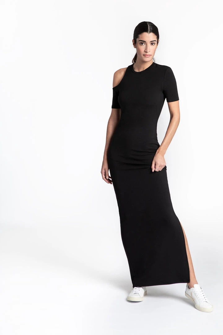 Our Gramercy Dress is elevated casual-wear with a playful twist. The familiar maxi silhouette introduces an unexpected cutout to expose one shoulder, while the side slits show a bit of leg. To dress it up, style with your hair slicked back and a heeled sandal. [SPLIT]