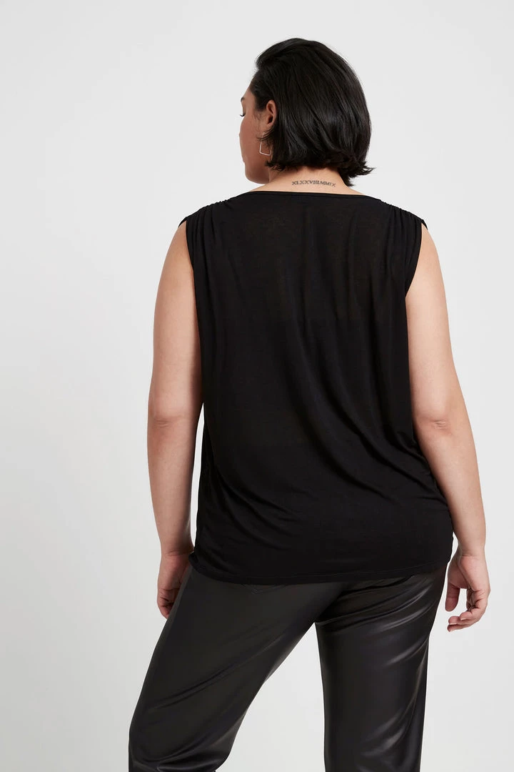Introducing the perfect base for all your casual looks. Fashioned from soft, high-stretch European sheer jersey, our Greenwich Village top is a sleeveless top with a rounded boat neckline, boxy silhouette and loose fit. Play her up with a bucket hat, high-rise cut-offs, and boots for added edge.[SPLIT]