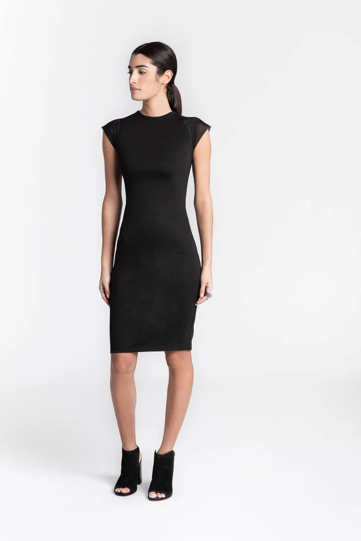 Chic and elegant, your wardrobe is not complete without a stylish pencil dress to easily take from day to night. Effortlessly highlighting your shape in all the right places. The detailed stitching of the soft and ever-so stretchy ponte fabric, blended with mesh sleeve panels on the top gives this pencil dress that falls heavy but feels as light as a feather to wear. [SPLIT]