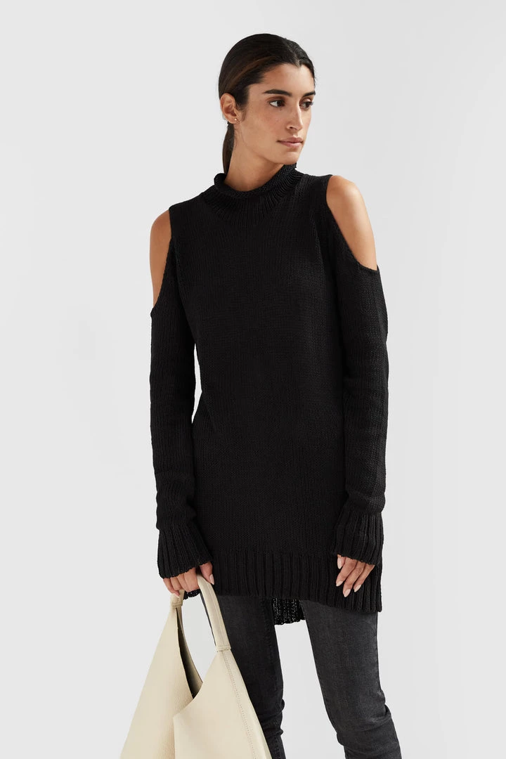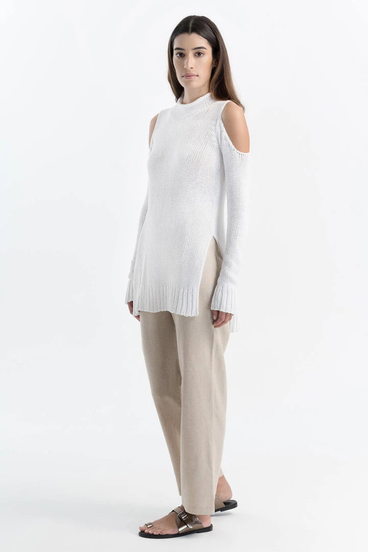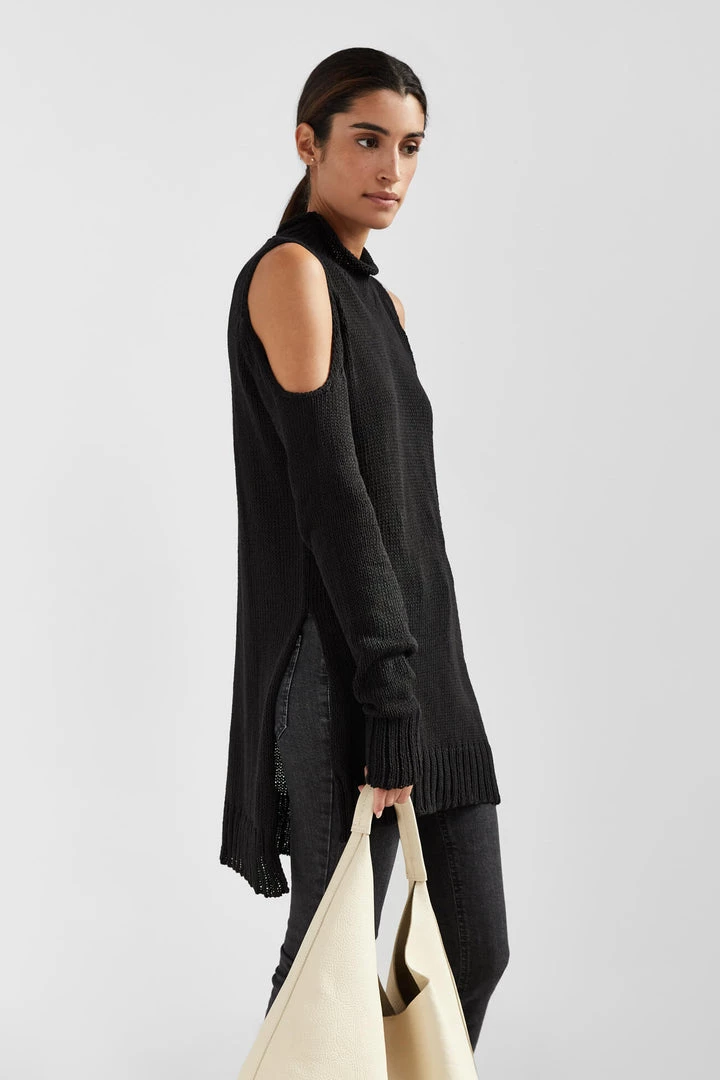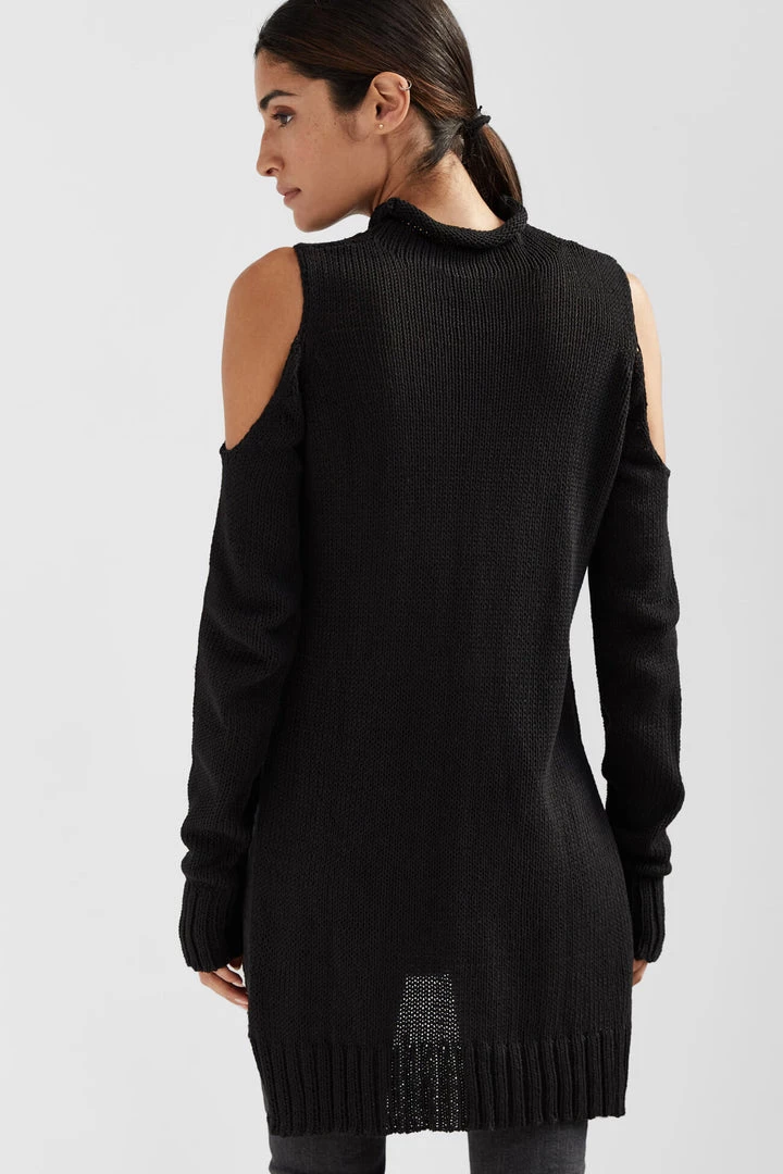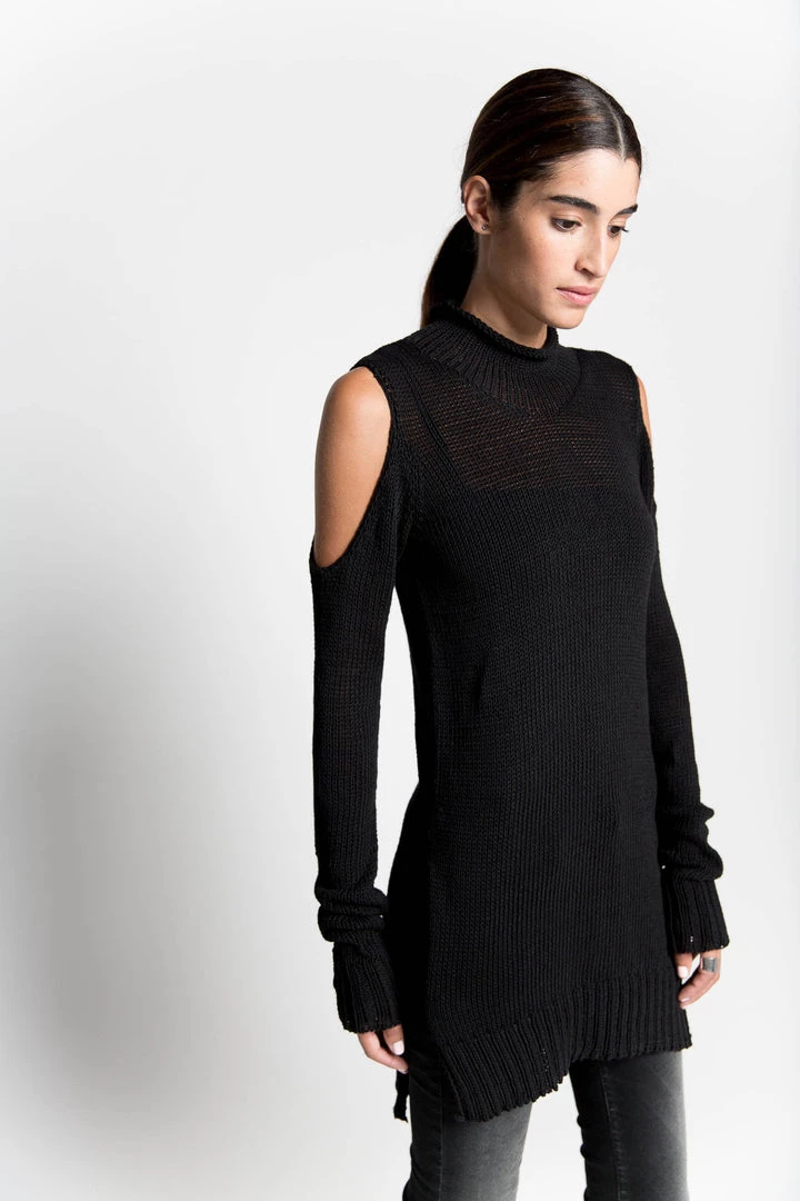 Jackie, our strikingly soft 100% European cotton sweater, first impresses with her high collar and tunic length. Then they’ll notice your shoulders, peeking through to make a statement. With an asymmetric, high-low bottom hemline and side slits, the Jackie Sweater is an everyday wear piece that has something to say. [SPLIT]