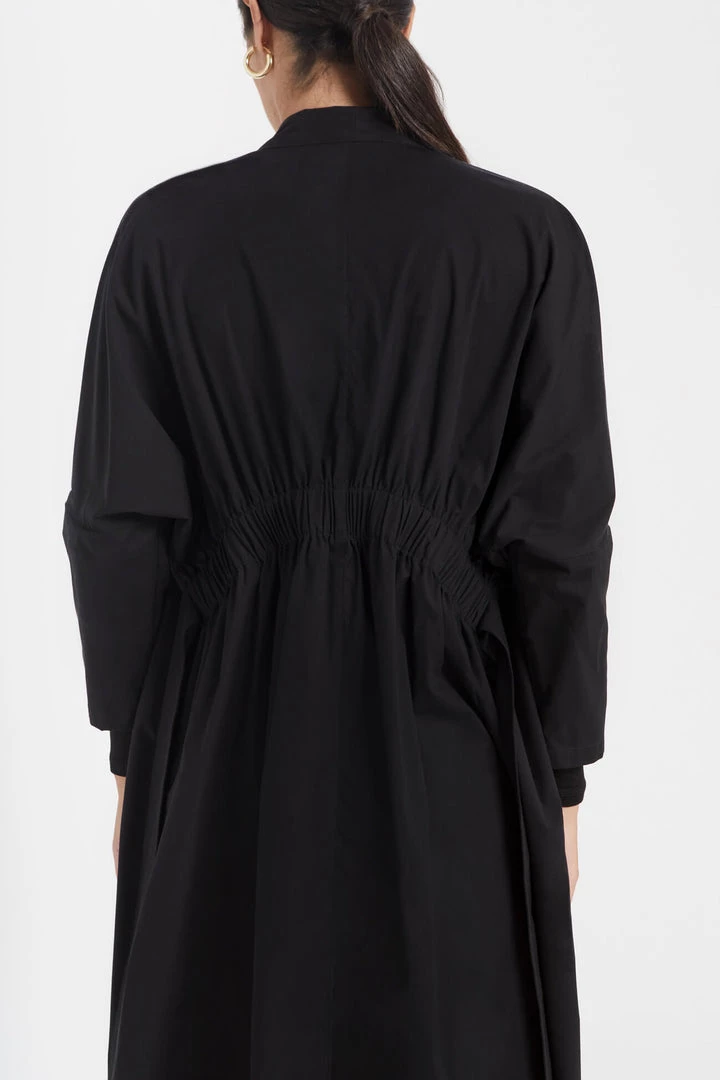 Meet Kaori, the essential minimalist’s lightweight jacket. With her roomy fit and flattering tie waist, she has the perfect proportions and edge for a practically versatile look about town. Kaori’s fashioned from a European cotton mix fabric with stretch. Ideal for transitional weather. [SPLIT]