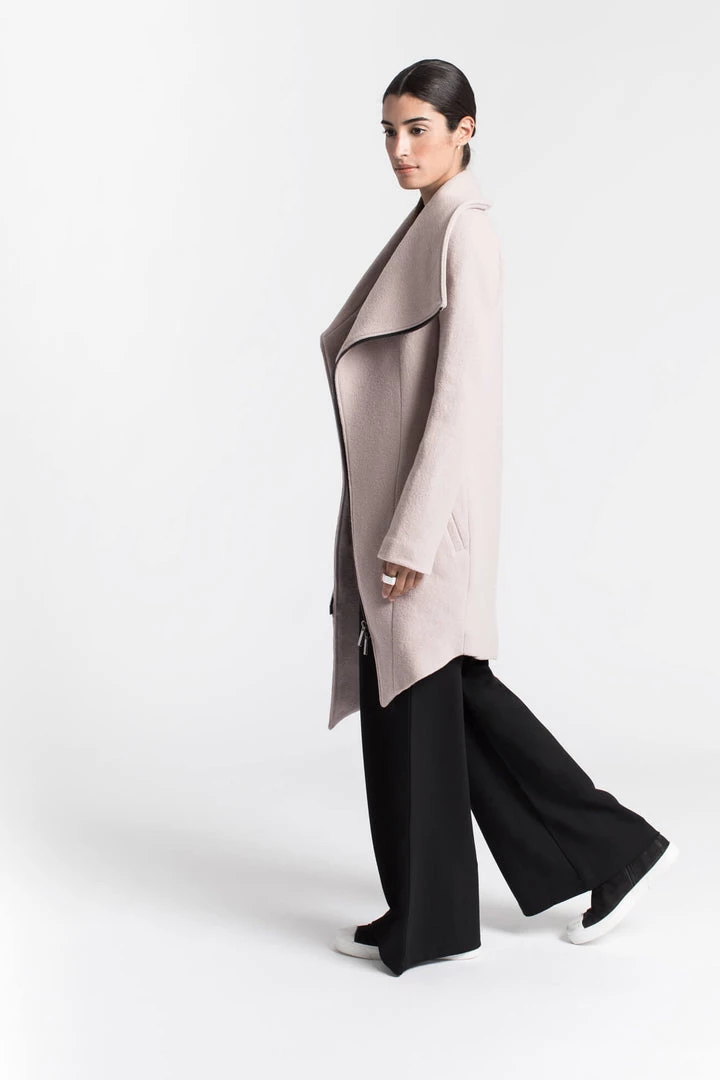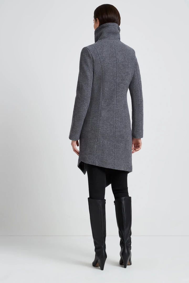 Stand out in our cozily chic Maren Coat. Maren features a diagonal two-way zipper and an asymmetrical bottom hem, coupled with a high wrap neckline that will keep you warm while always stylish. The tunic length offers a fit that’s both comfortable and flattering.