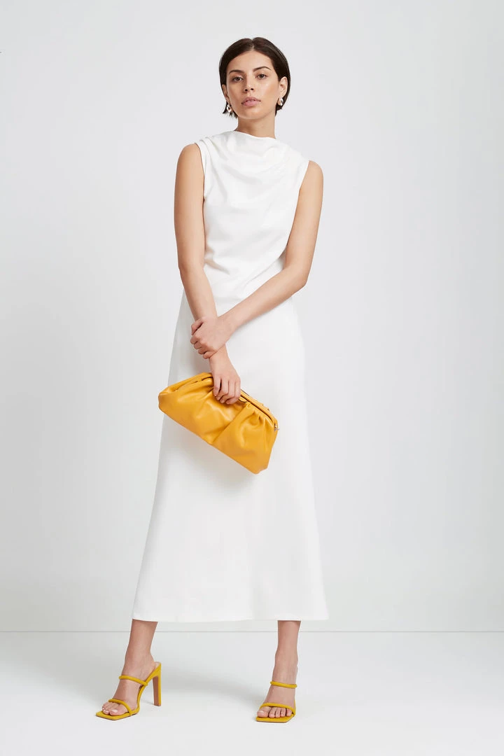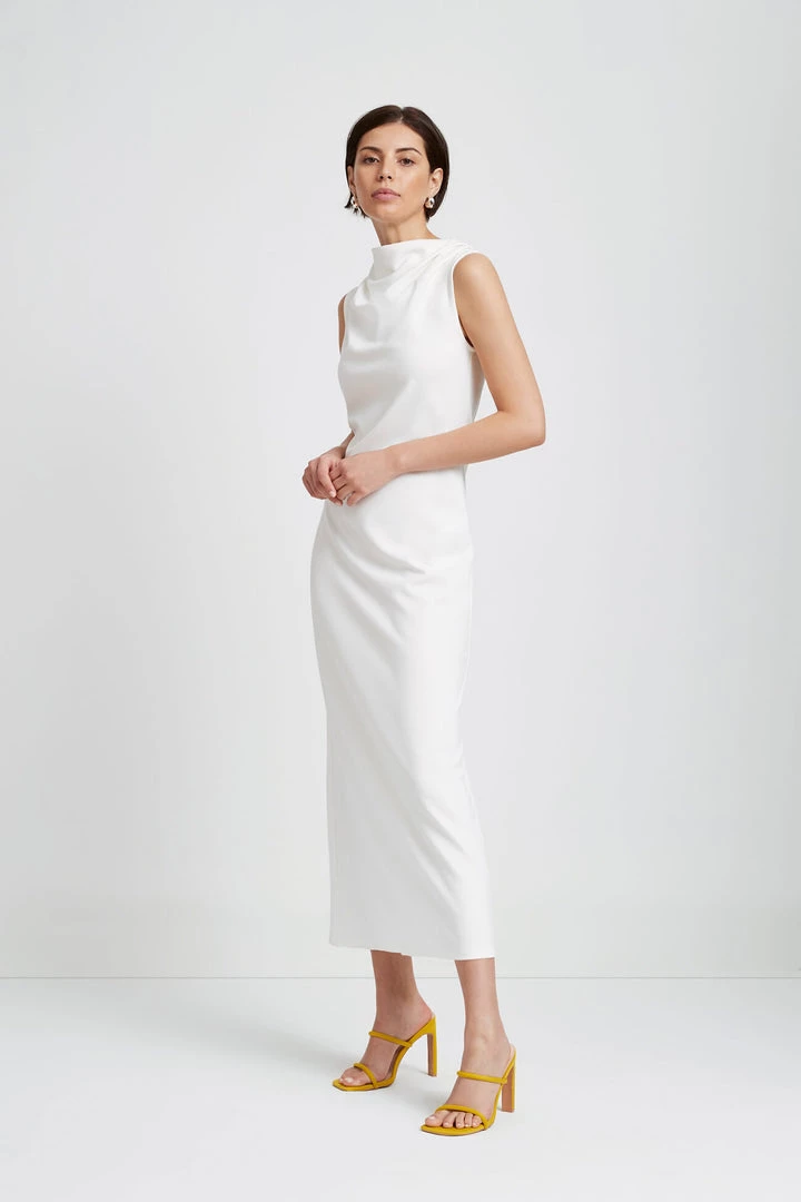 Graceful elegance in a dress, our Mercer is perfectly versatile for your most special events. She features an elegant cowl neck and a column silhouette that instantly makes you look taller. Mercer’s soft, mid-stretch European Punto di Roma makes her the ideal canvas to accessorize with your statement clutch and easy heels. [SPLIT]
