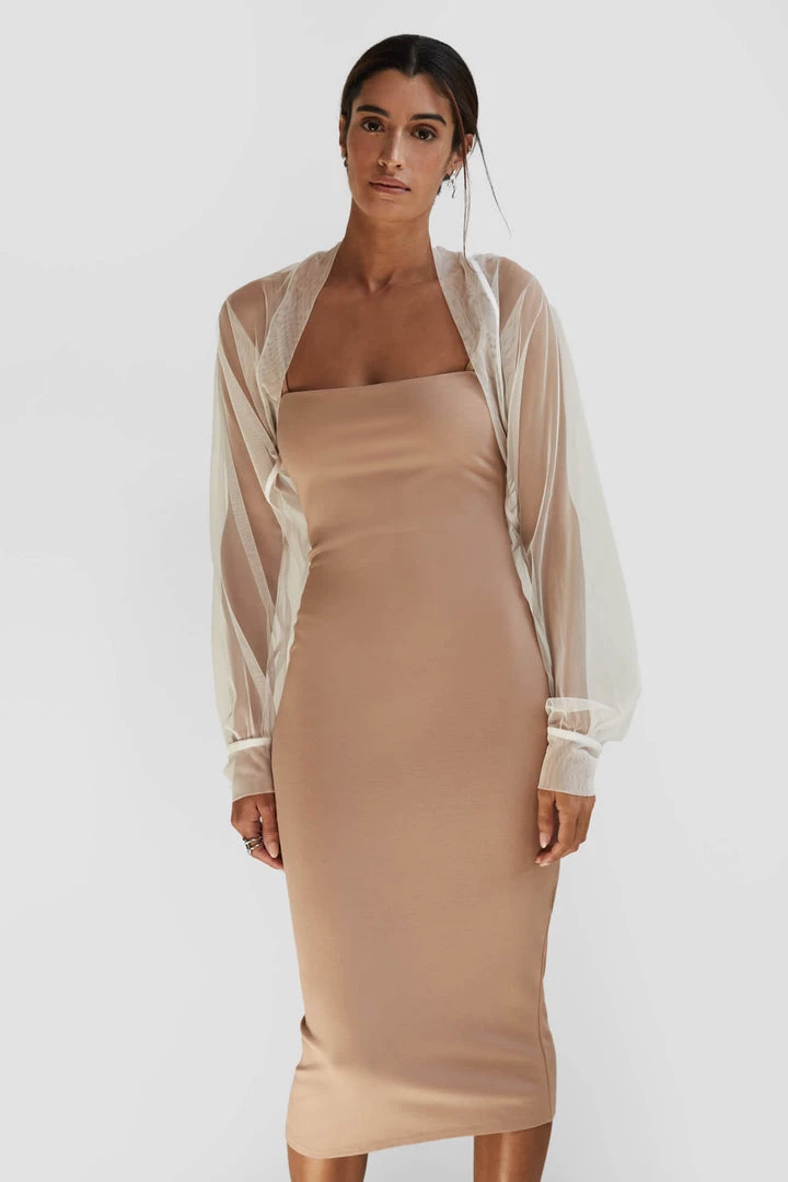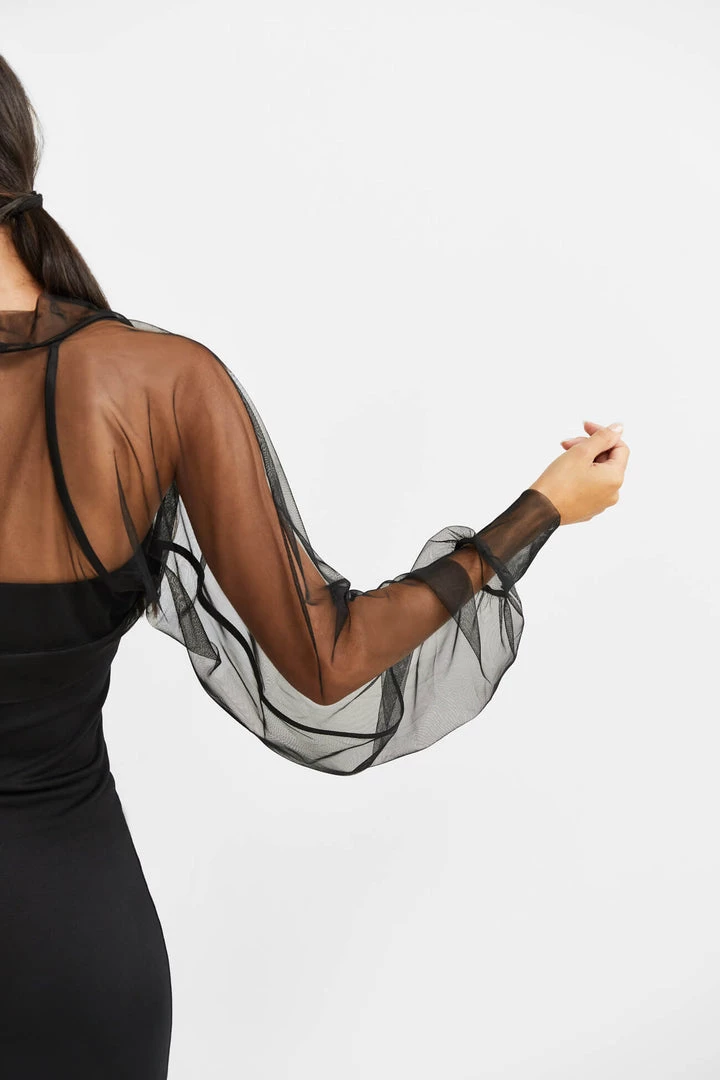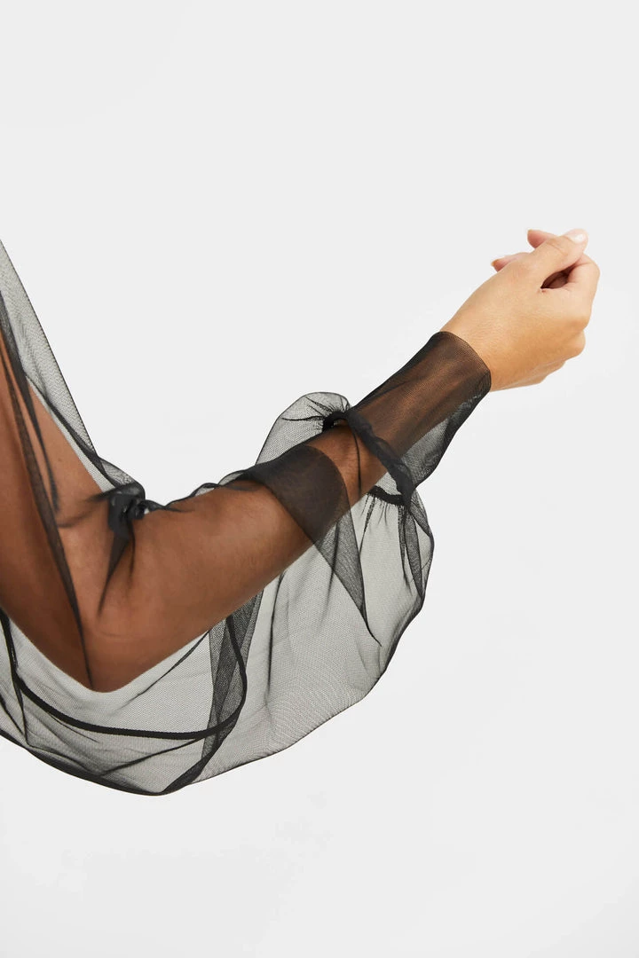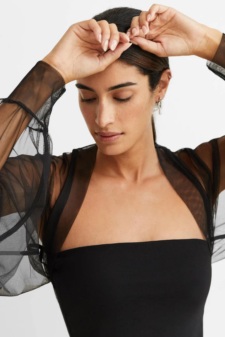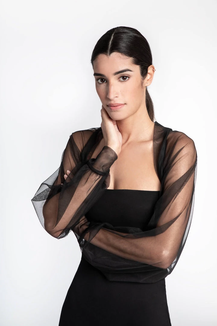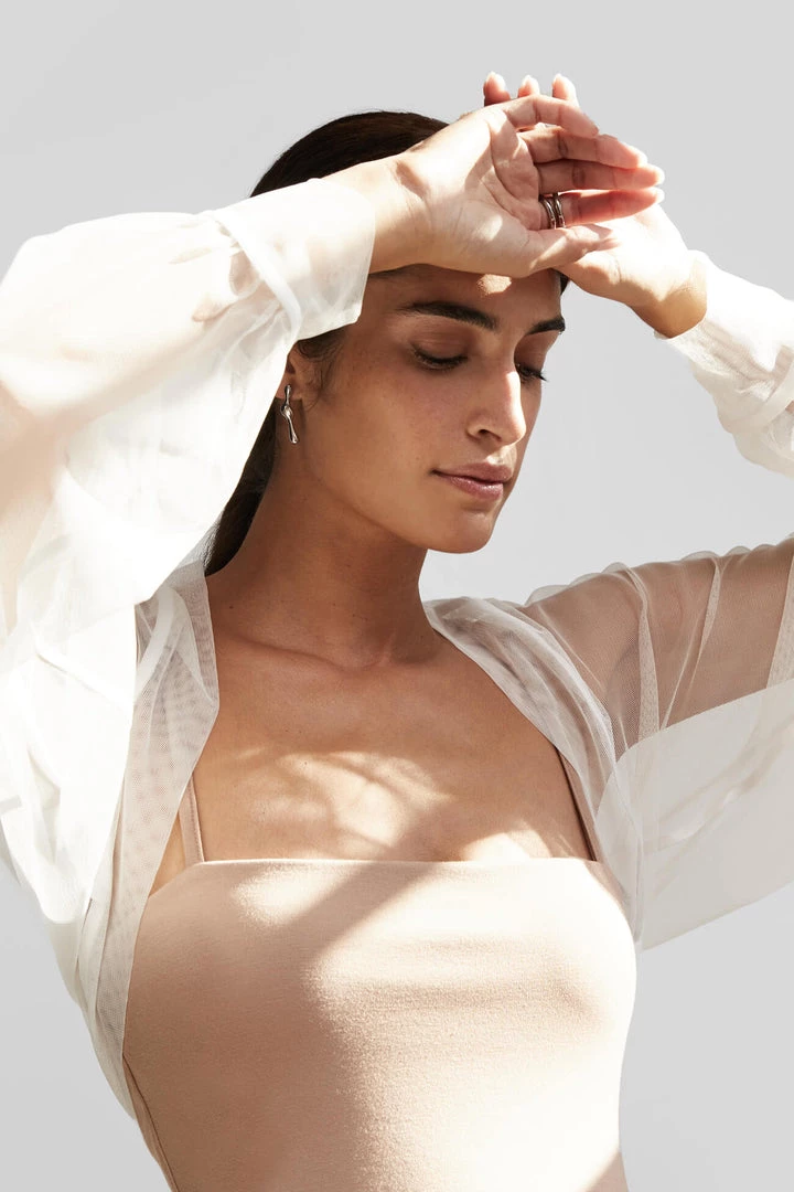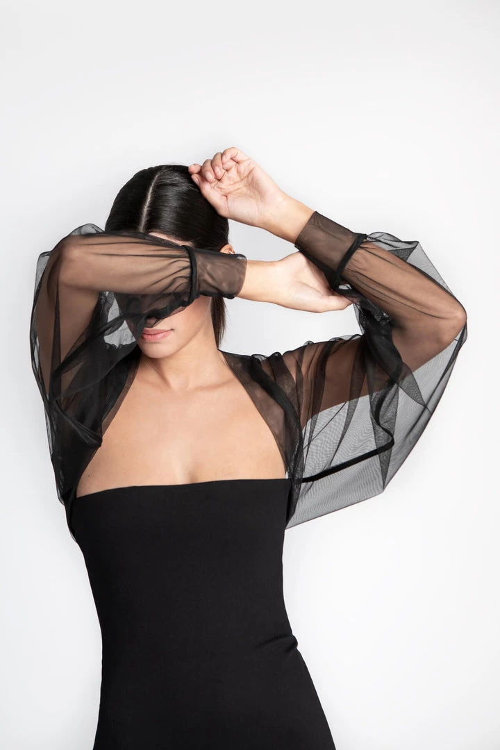 Light and airy, soft against the skin, our Olympia Bolero is pure glamour. Fashioned from premium European mesh, Olympia’s Juliette sleeves gather to a fitted cuff for a truly romantic silhouette, while the boning in the back holds the piece perfectly in place. Now available in both black and white to officially go with everything in your closet, she’s THE piece to take your night-out outfit to the next level. [SPLIT]