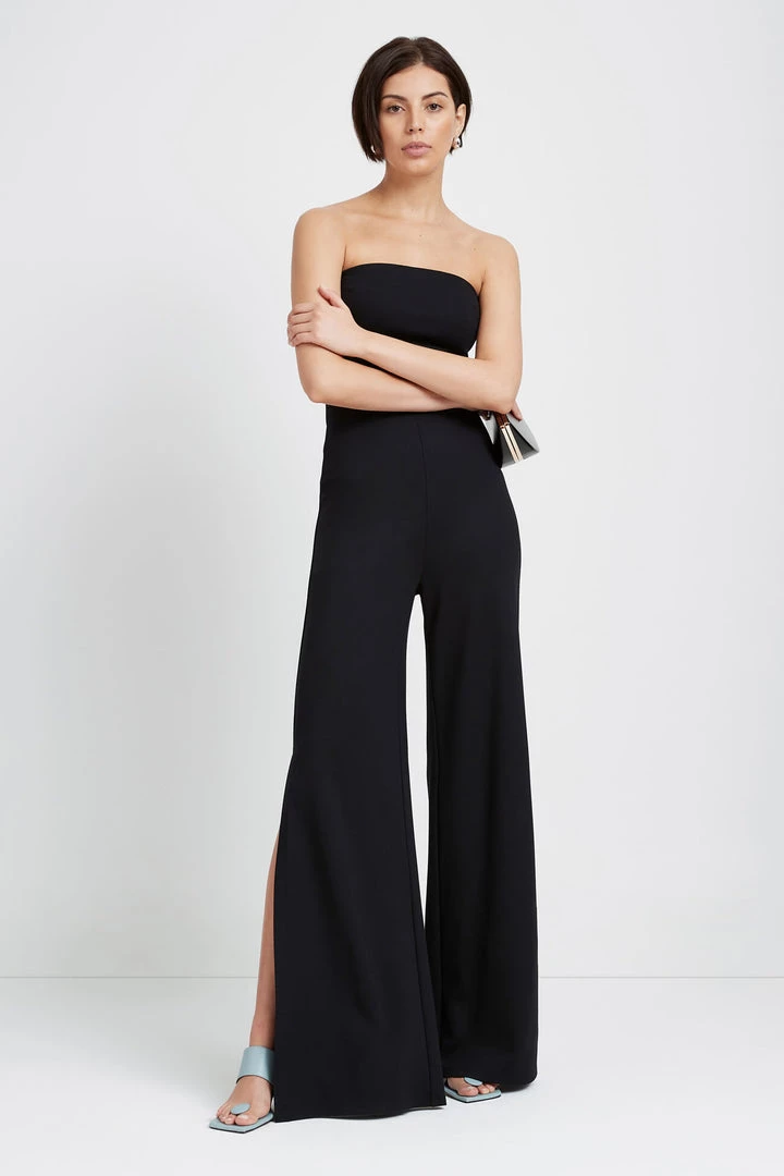 A sophisticated alternative to the LBD, the Park Jumpsuit would have you looking forward to your next occasion. This one-piece features a torso-hugging, strapless bodice and flattering straight pants with a subtle flare. The side hem is finished with a split for a show of leg. It’s knitted from soft European ponte, which is responsible for the exceptional fit. [SPLIT]