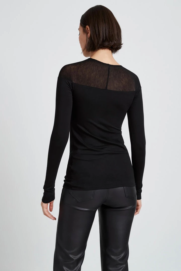 Say hello to our day-to-night gem for warmer weather, the Pearl Top. Crafted mainly from soft, high-stretch and sustainable European jersey, she’s cut in a sweeping off-the-shoulder silhouette, with a neckline in sheer European jersey for that understated show of skin. Uncomplicated yet mesmerizing, Pearl is a unique long sleeve piece that’s up to any styling task. We love her with faux leather jeans and glints of gold.