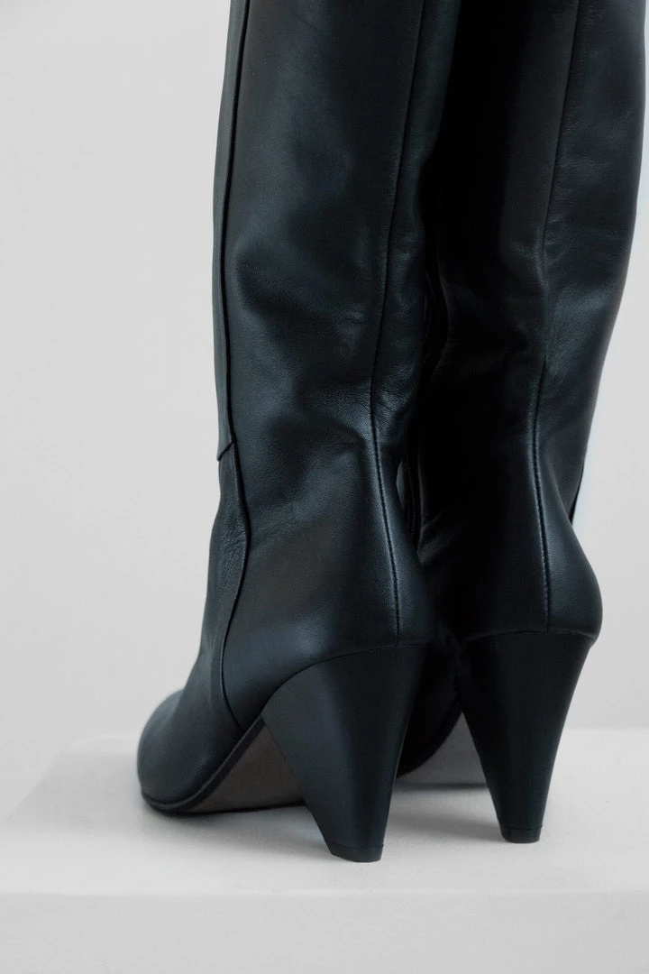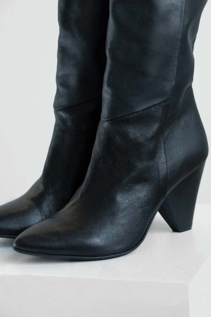 Meet the Harlows, our unique statement boots designed to give your look a lift (literally). Handcrafted from genuine Italian leather by one of Europe’s leading shoemakers, Harlow offers a classic knee-high silhouette that features a subtle slouch around the ankles and a tapered toe for effortlessly chic flair. Their angular block heels make the Harlow Boots feel modern and (yes!) refreshingly walkable. The leather comes rendered with a slight polish for a luxurious finish.[SPLIT]