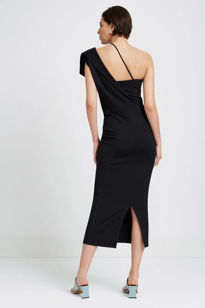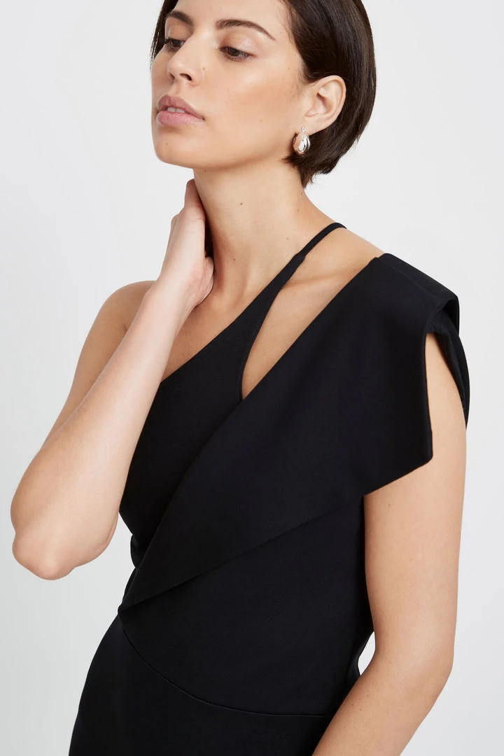 Aspiring to reinvent the little black dress, we designed the Tiffany. She’s a sophisticated midi featuring our signature asymmetric tailoring: in this case, a one-shoulder neckline finished with a lapel-inspired detail. Tiffany is sculpted from our favorite European mid-stretch ponte, making her structured enough to keep her shape but supple enough to hug yours. Wear Tiffany to an intimate brunch date or enjoy her out during future nightlife—she promises to be always timeless…