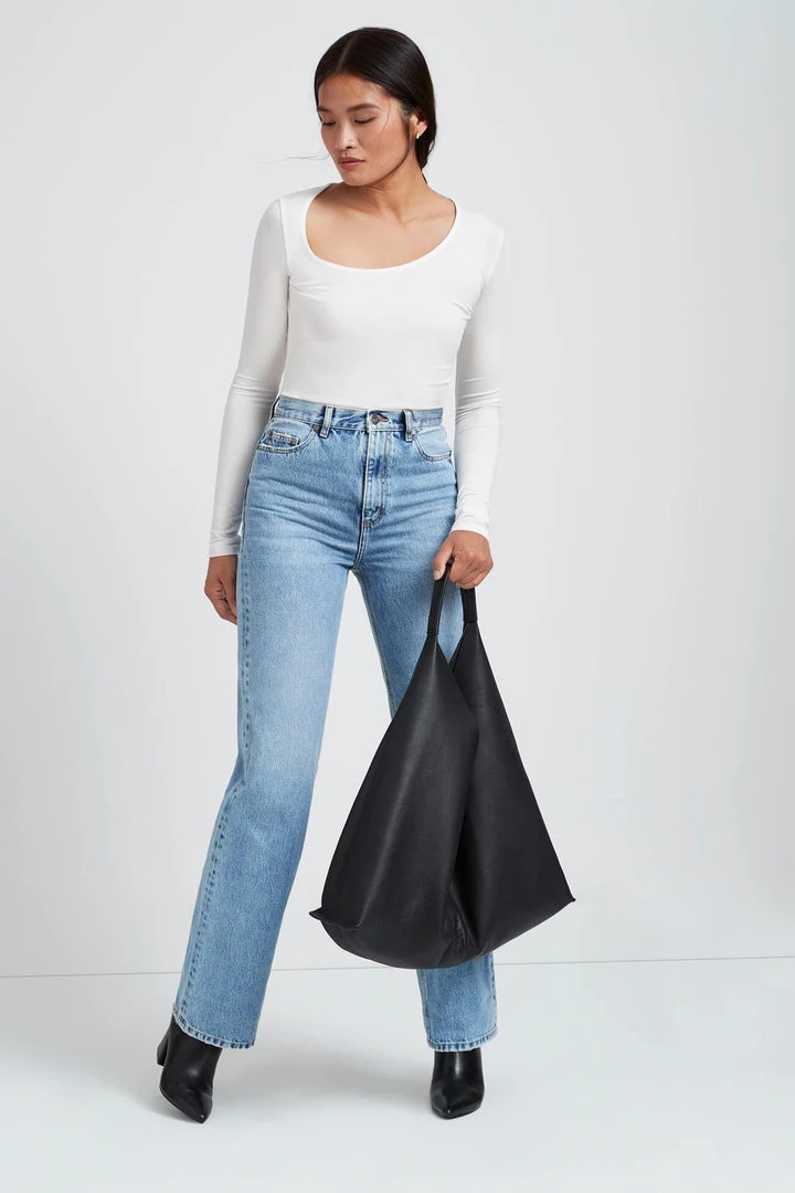 If you love being original, our Fiora Top is for you. A LBT with a twist, she features a modern, architectural neckline with an off center circular silhouette. Fiora’s fashioned from silky soft and eco-friendly European jersey that works for all seasons + our signature extra long sleeves.[SPLIT]