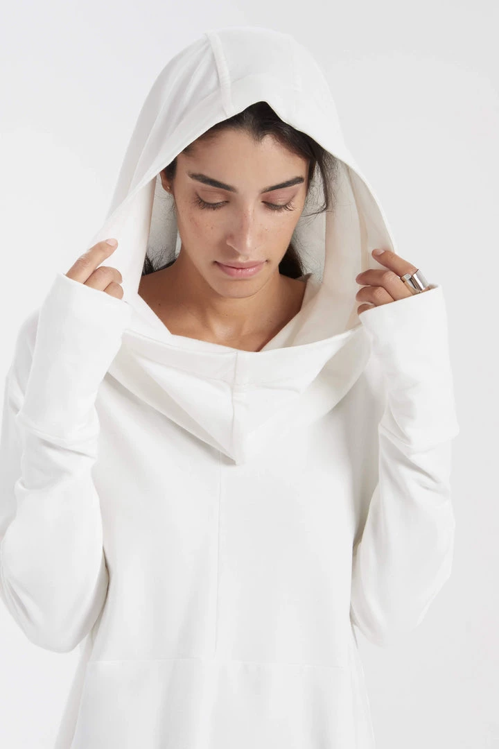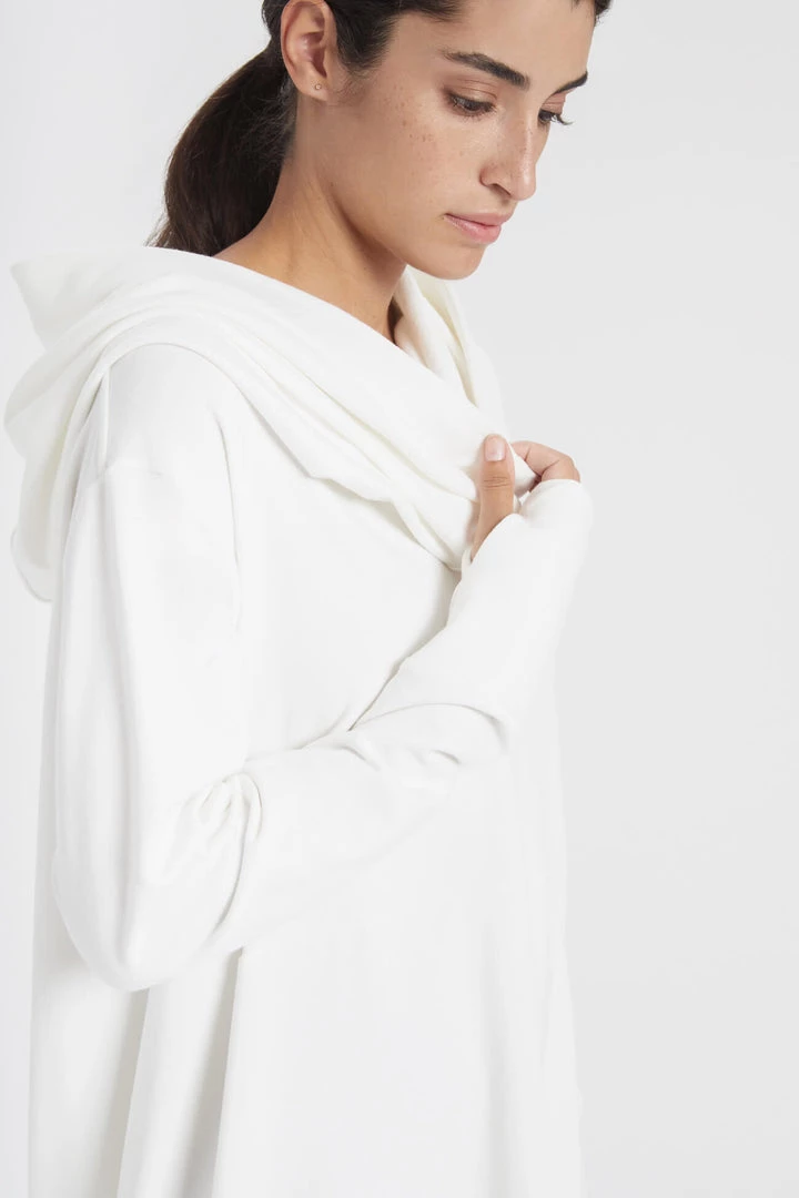 A masterwork in minimalist edge, our Firenze Hoodie is distinguished by a veil-like hood that brings the drama whether worn up or down. Crafted from light European sweatshirt fabric, she features an ultra-relaxed fit perfected by dropped shoulders and an elevated back that dips. Thumbholes keep the sleeves pinned to your wrist for a cozy, finishing touch. Firenze is as easy to maintain as to wear: effortless to clean, structured to last, doesn’t pill. [SPLIT]