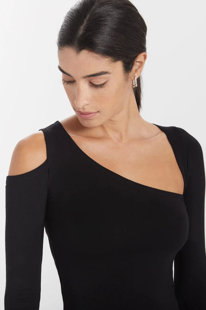 You wanted our popular one-shoulder design with two long sleeves. We listened! Equally elegant, sexy, sophisticated, and unique, this design helps you achieve effortless glamour. It’s made of high stretch material so please order a smaller size when in doubt. [SPLIT]
