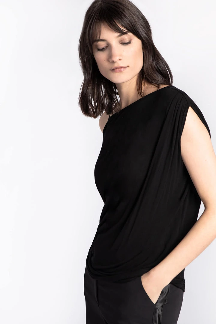 Beautifully simple and intricate all at once, the Vienna Top is the imaginative blouse you never knew you needed. It reinvents the sleeveless top with perfect draping and an utterly soft fit. Style it with an elegant bun and delicate earrings for a truly romantic ensemble.